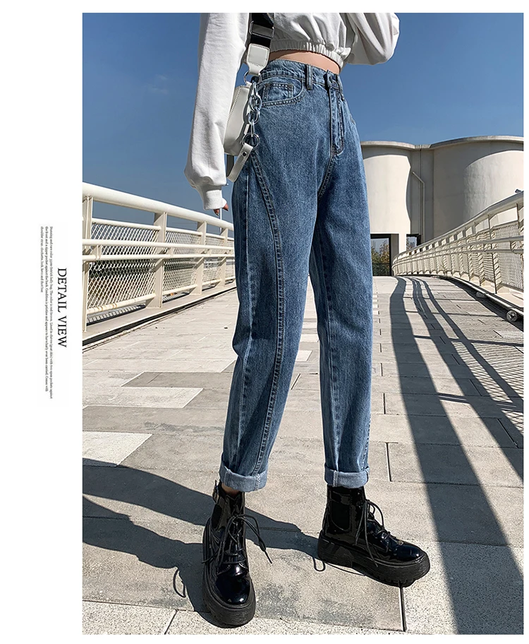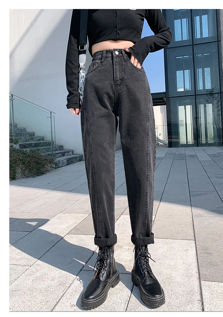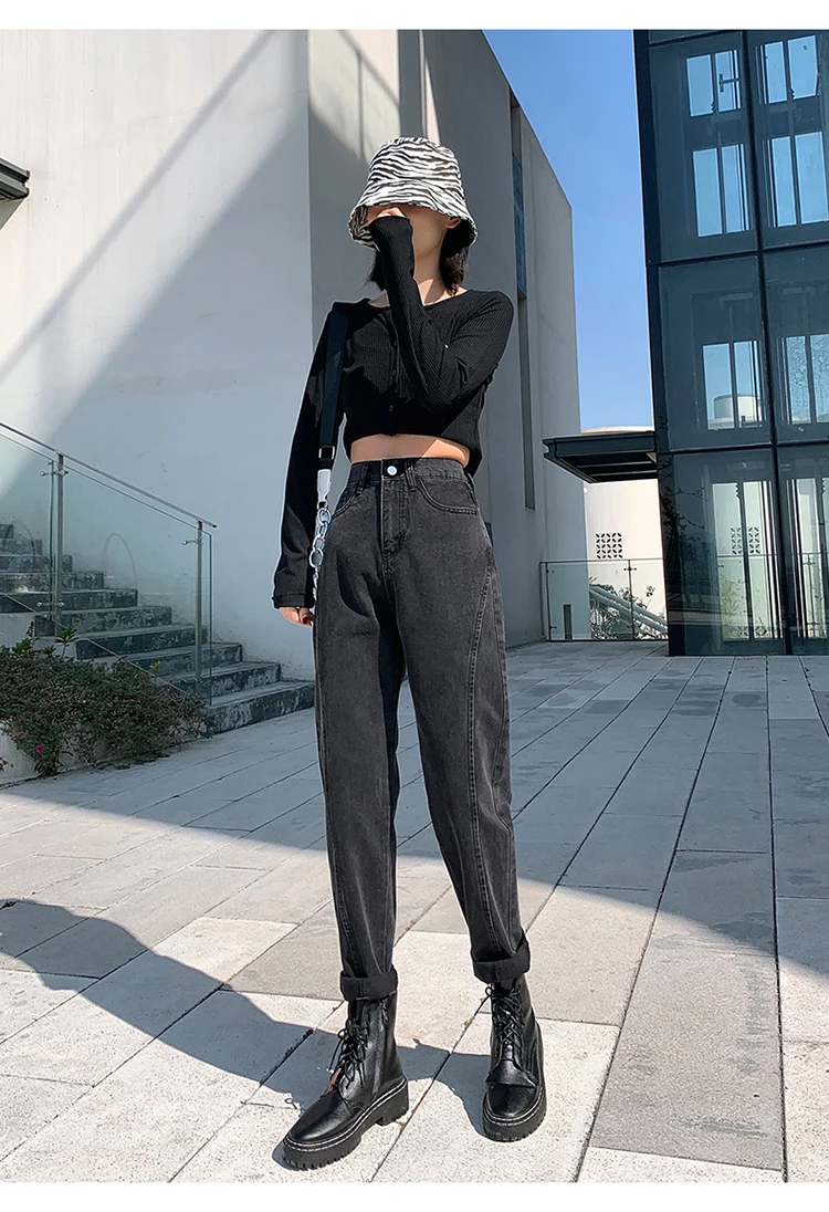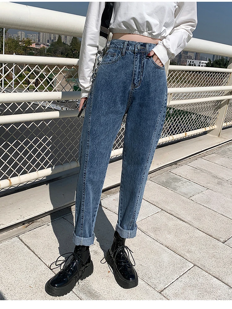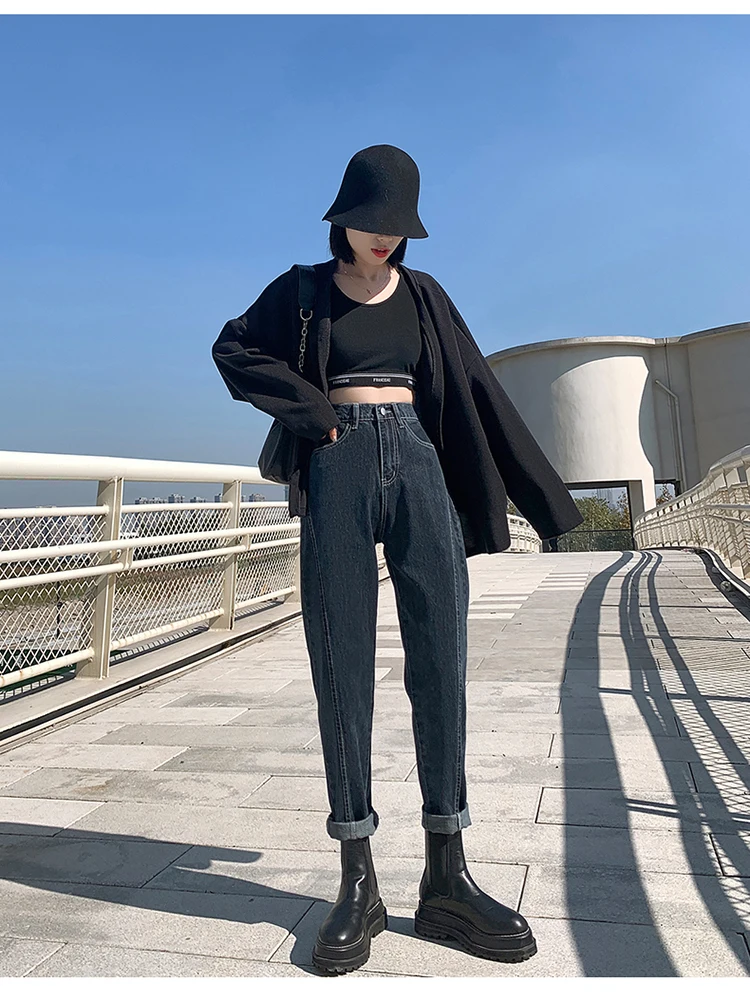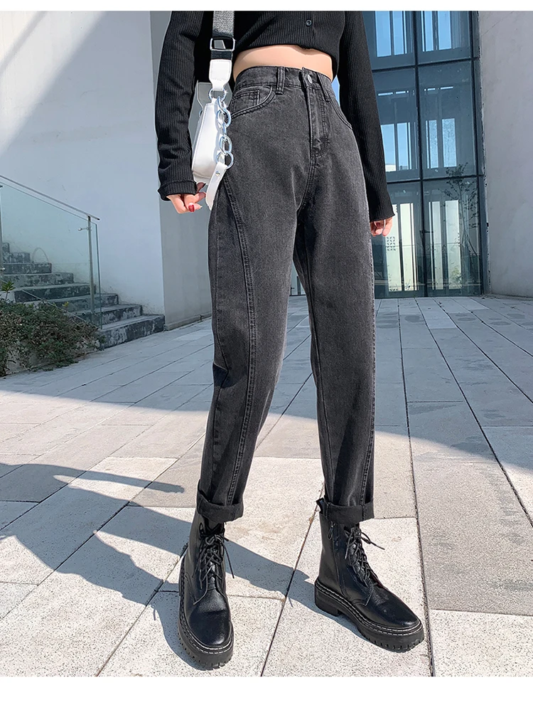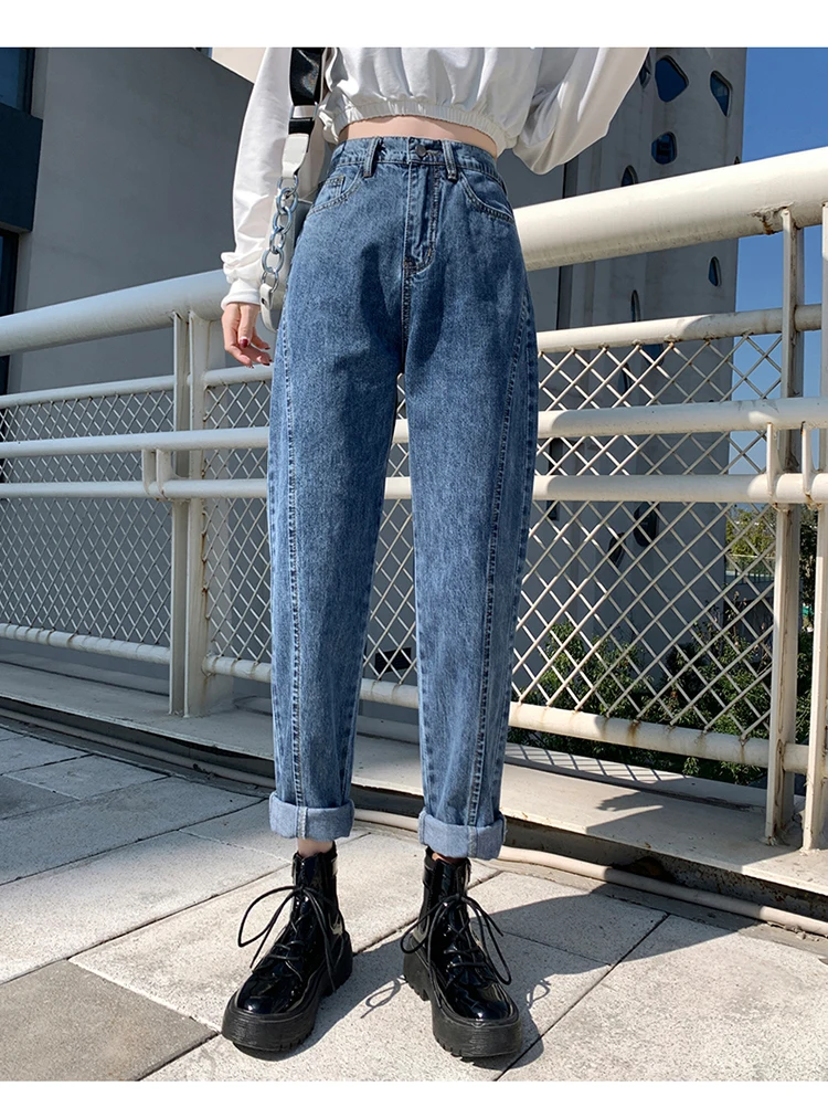 GUUZYUVIZ Blue Grey Harem Jeans Woman Plus Size High Waist Loose Pantalones Jeans Mujer Casual Vintage Korean Jeans Denim