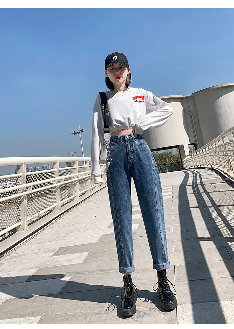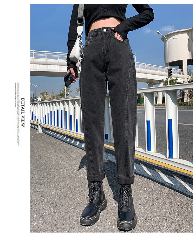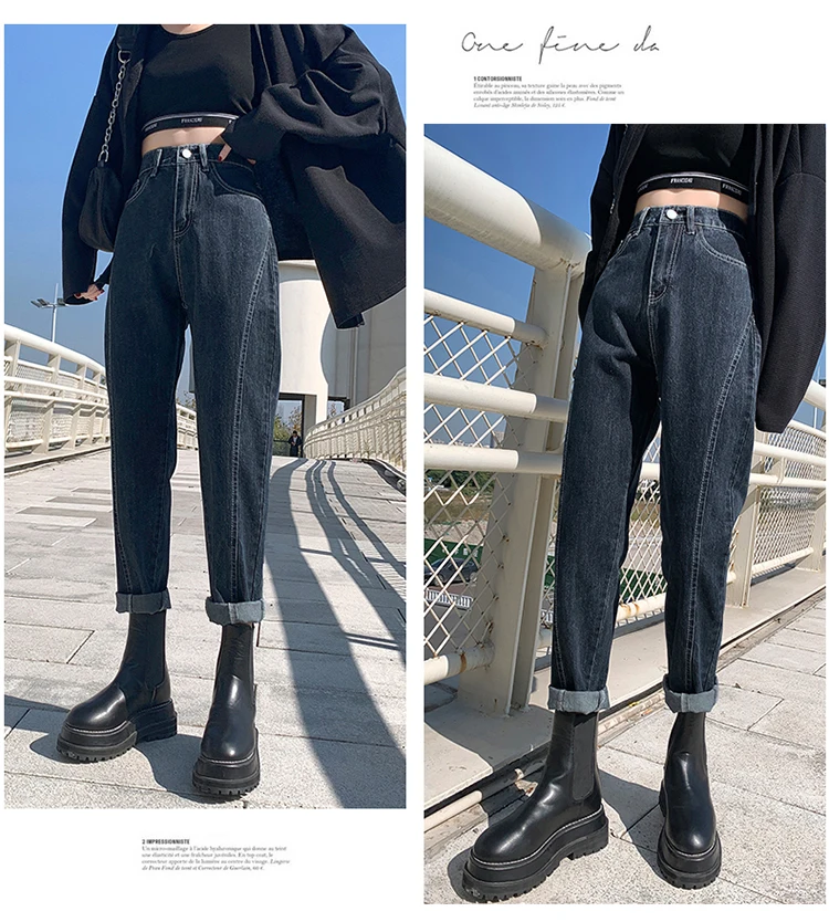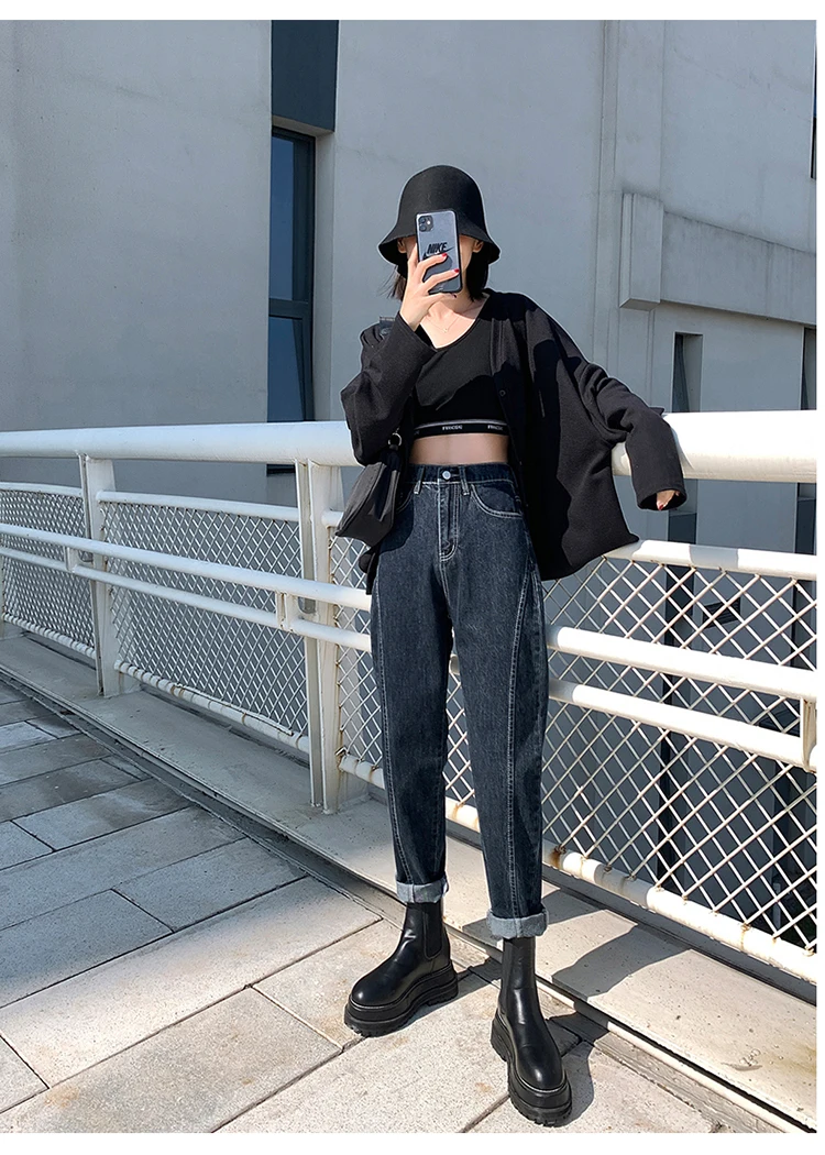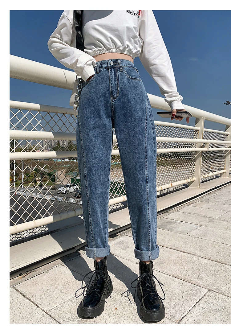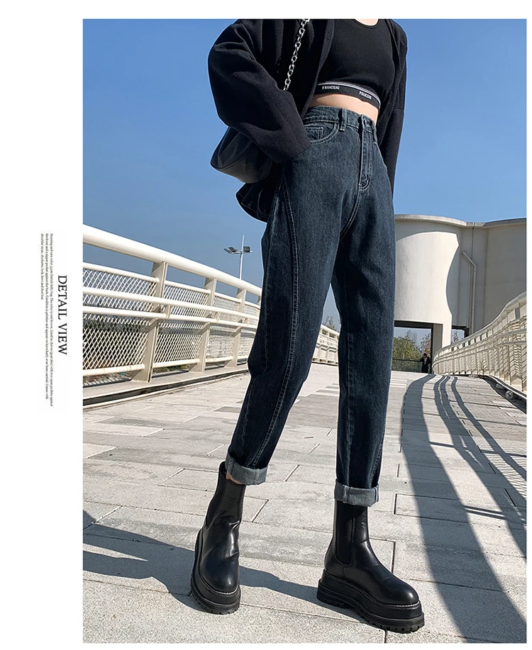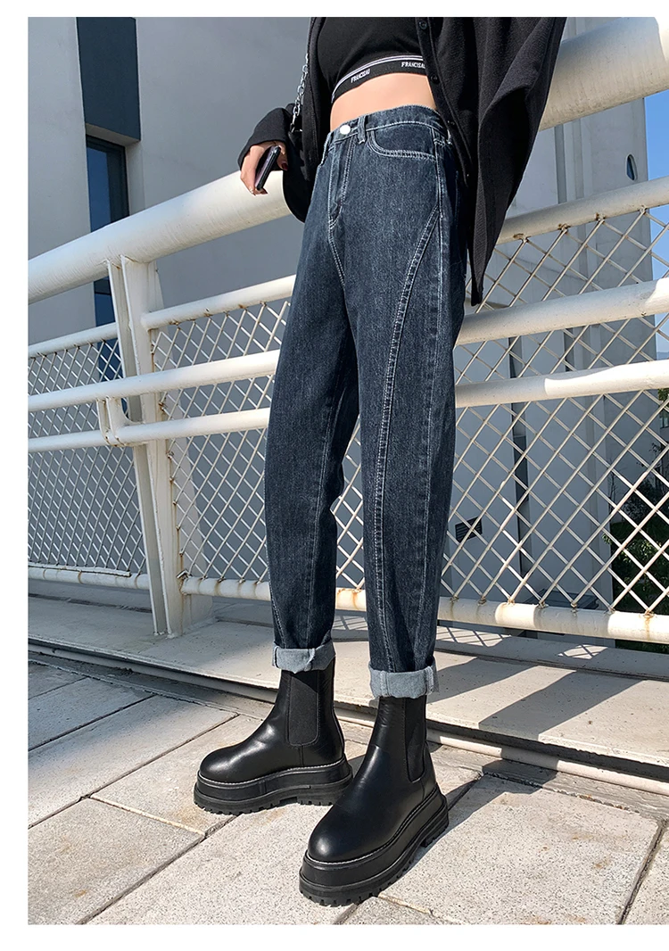GUUZYUVIZ Blue Grey Harem Jeans Woman Plus Size High Waist Loose Pantalones Jeans Mujer Casual Vintage Korean Jeans Denim