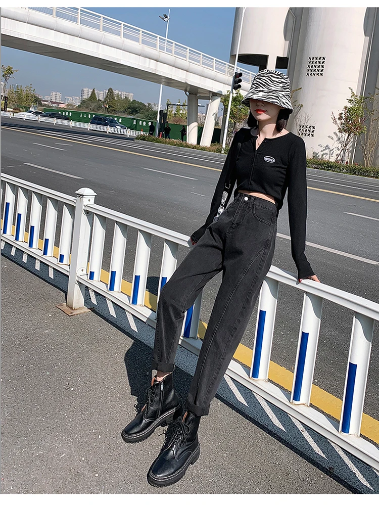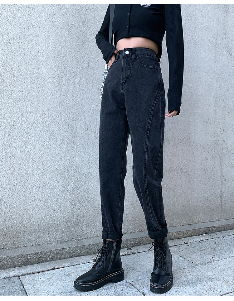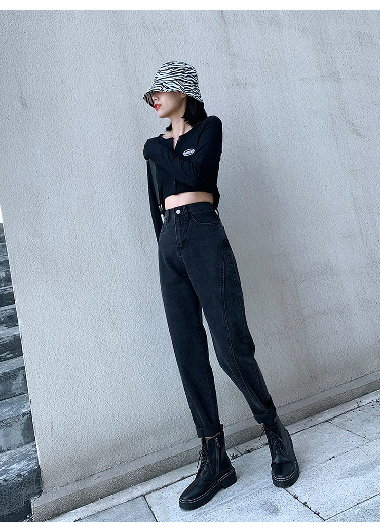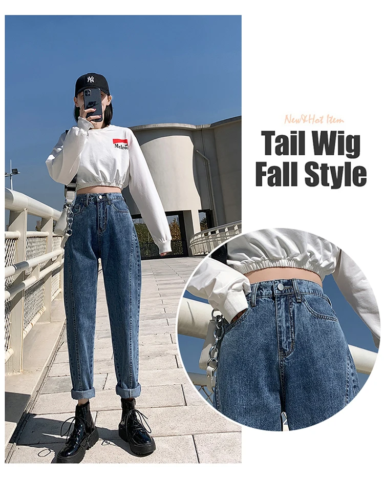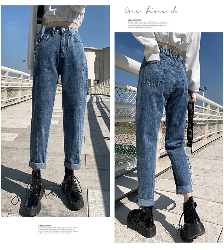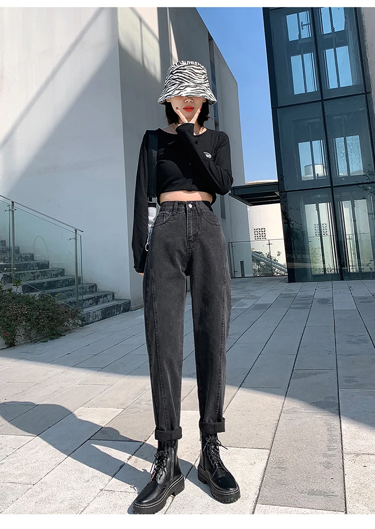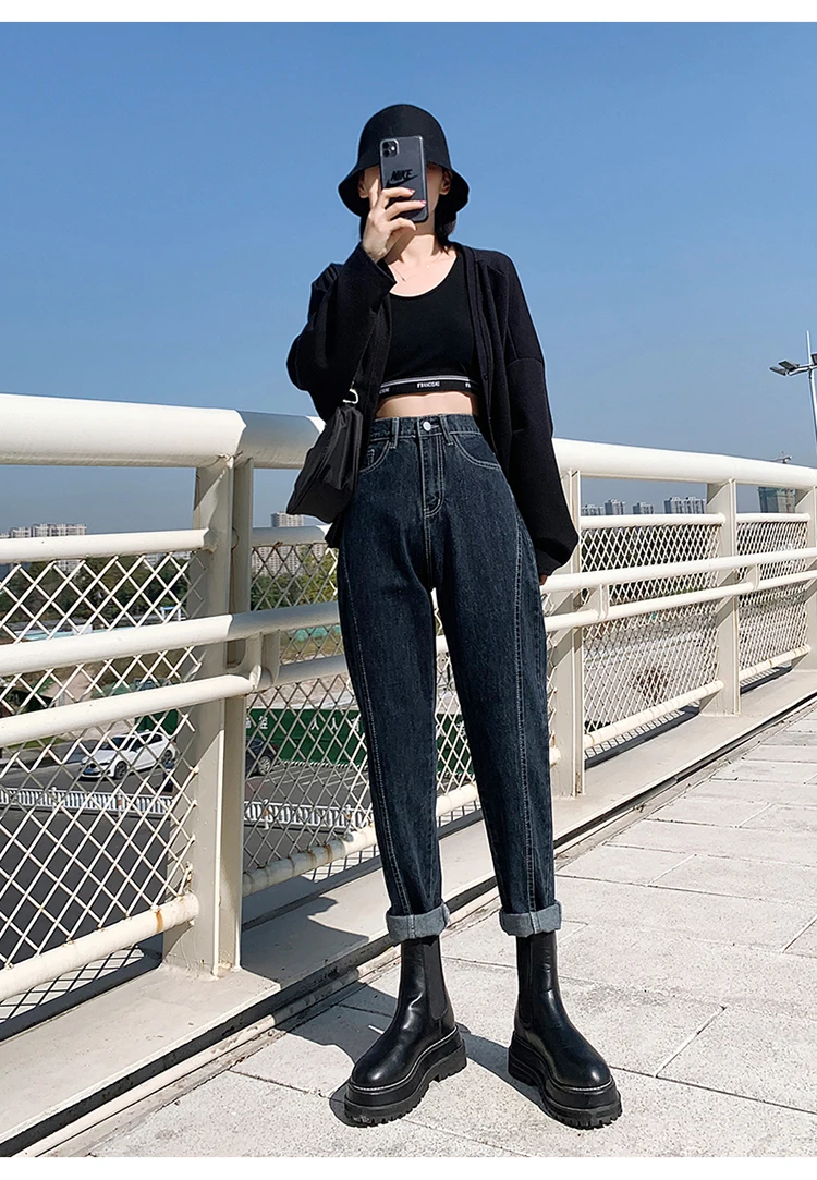 GUUZYUVIZ Blue Grey Harem Jeans Woman Plus Size High Waist Loose Pantalones Jeans Mujer Casual Vintage Korean Jeans Denim
