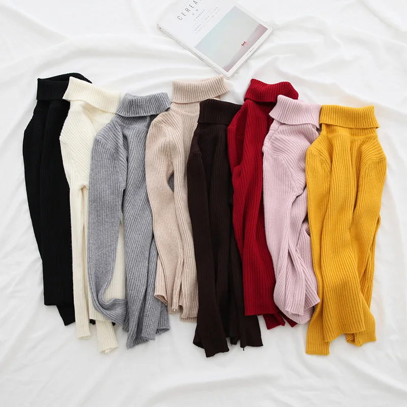 H.SA 2020 Autumn Basic Turtleneck Sweater Casual Soft Solid Jumper Fashion Korean Sweater Slim Femme Elasticity Winter Pullovers