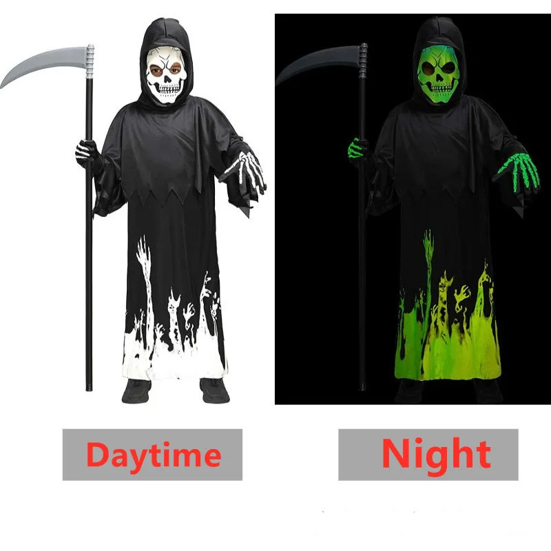 Halloween children's horror skeleton ghost ghost red eye death costume sickle ghost dark messenger ghost costume suit