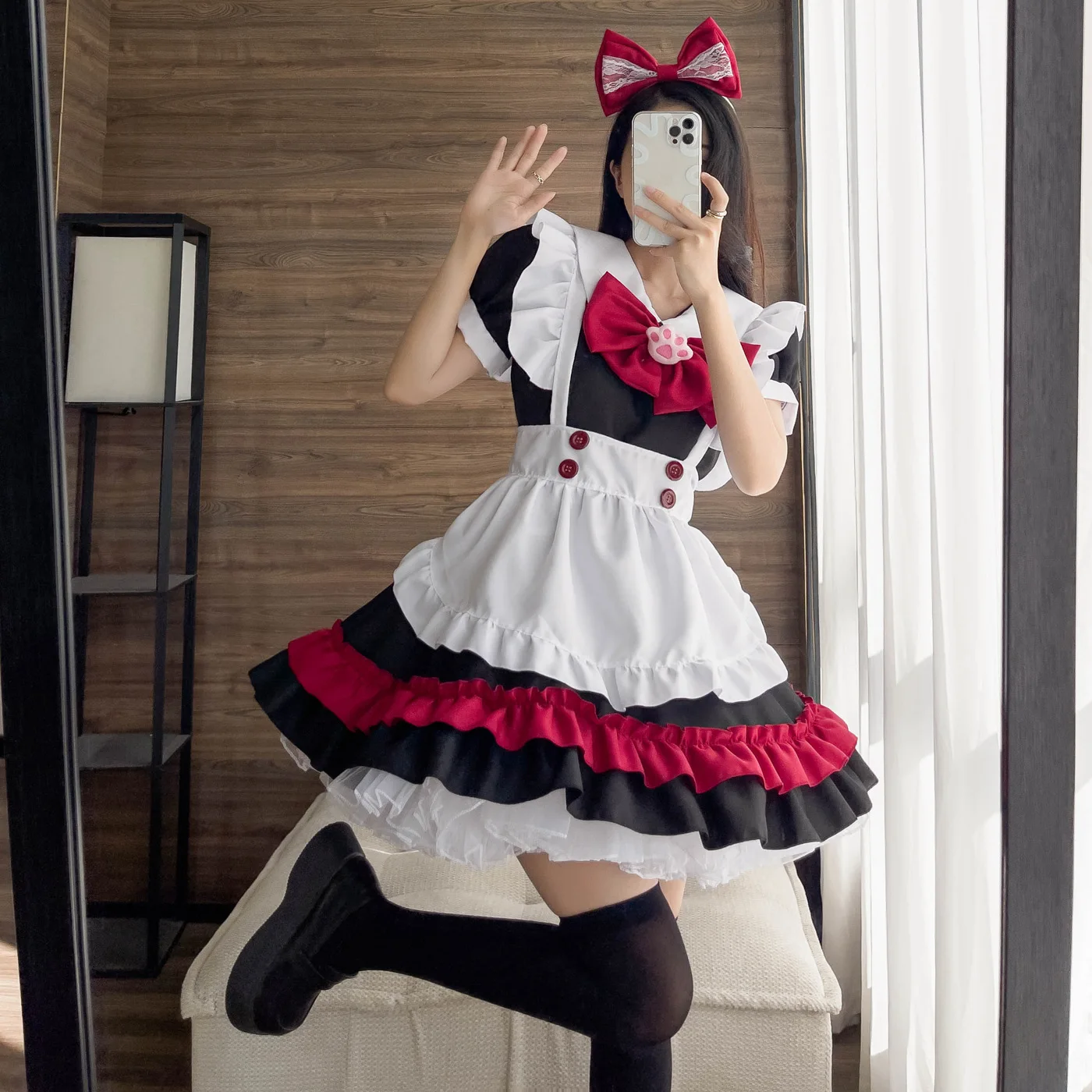 Halloween Christmas Cosplay Maid Costumes Women Gothic Lolita Comic Con Show Little Evil Maid's Wear Role Play Outfit Sexy Dress