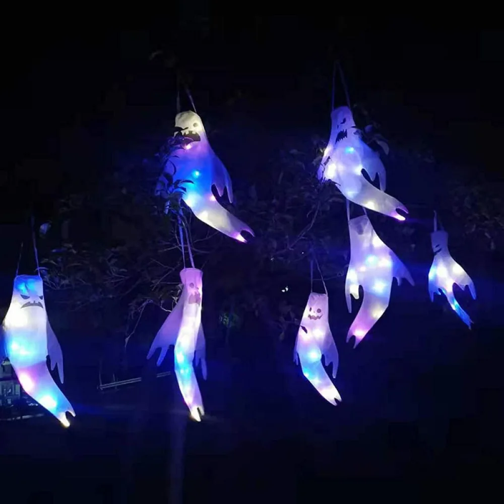 Halloween LED Outdoor Light Skeleton Ghost Horror Grimace Glowing Ghost Pendant Halloween Decorative Hair Dryer Ghost