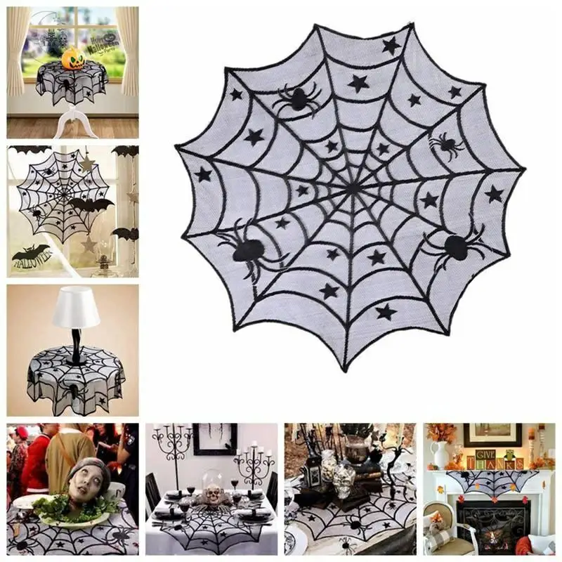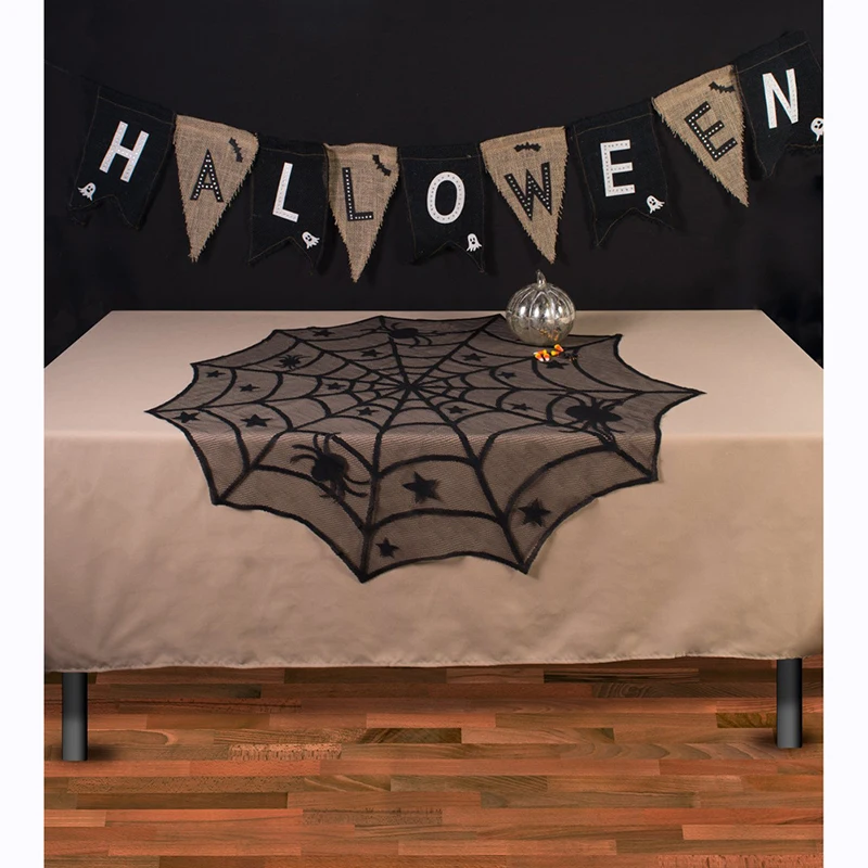 Halloween Table Cloth Halloween Decoration Lace Backdrop Spider Web Tablecloth Black Runner Table Cover Halloween Horror Props