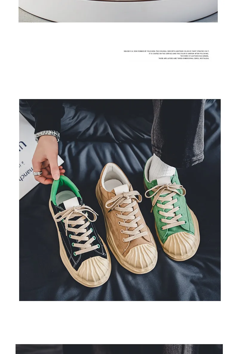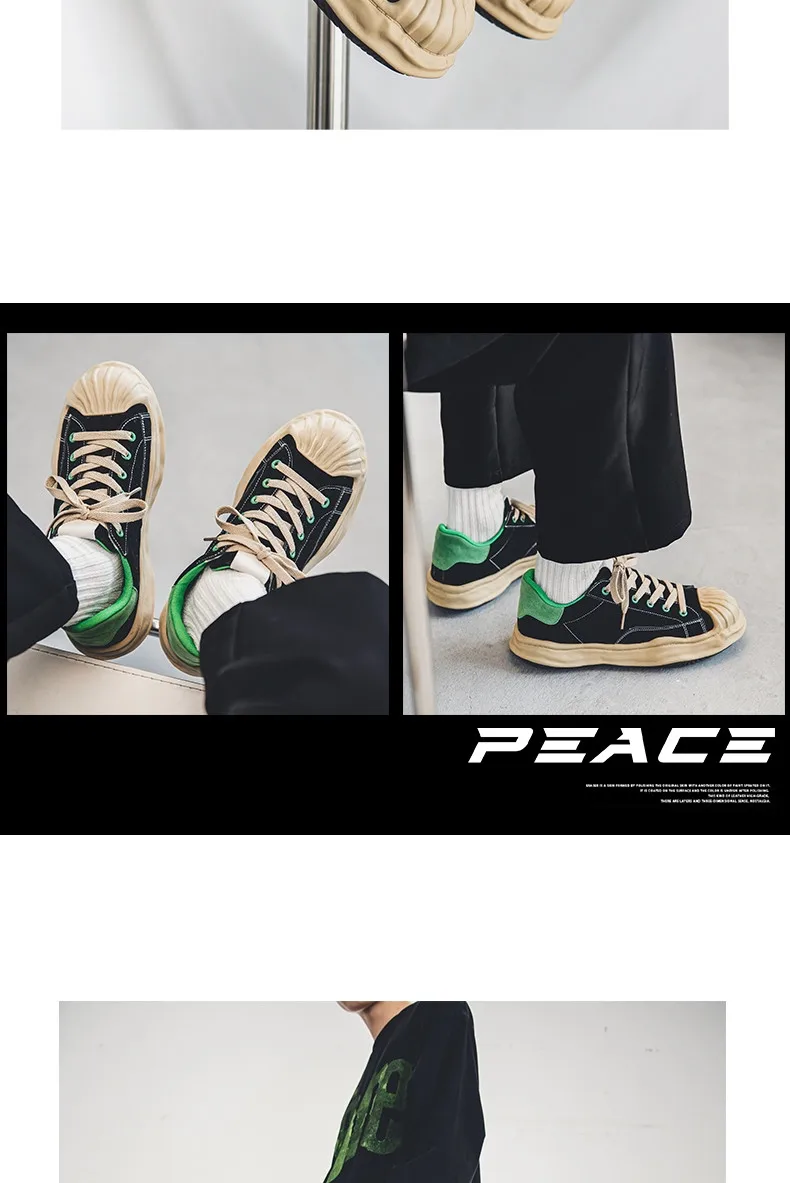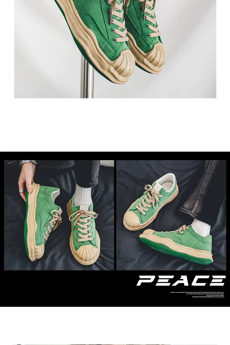 Harajuku Green Casual Sneakers Men Shellhead Vulcanized Shoes Men Street Hip Hop Canvas Sneakers Men Platform Footwear