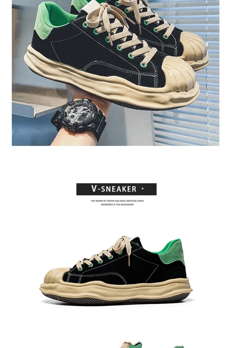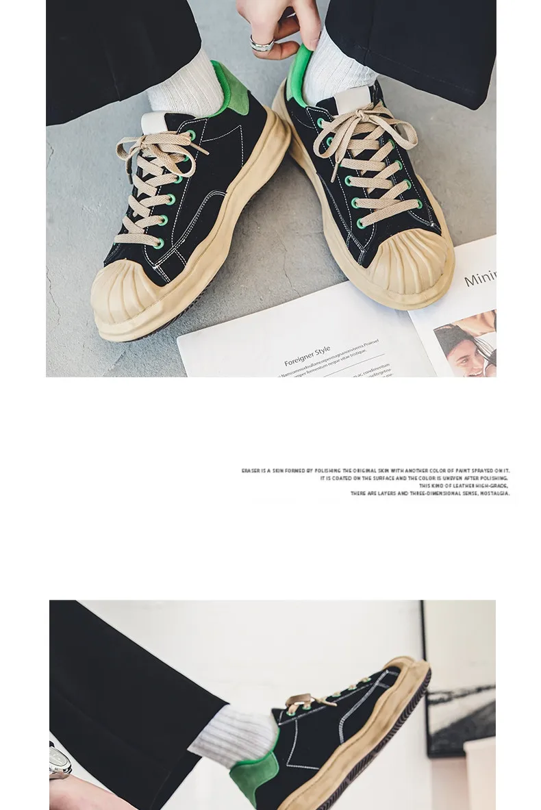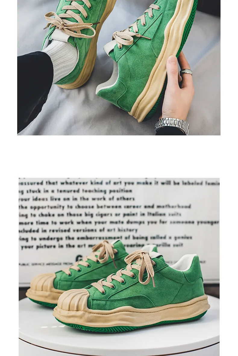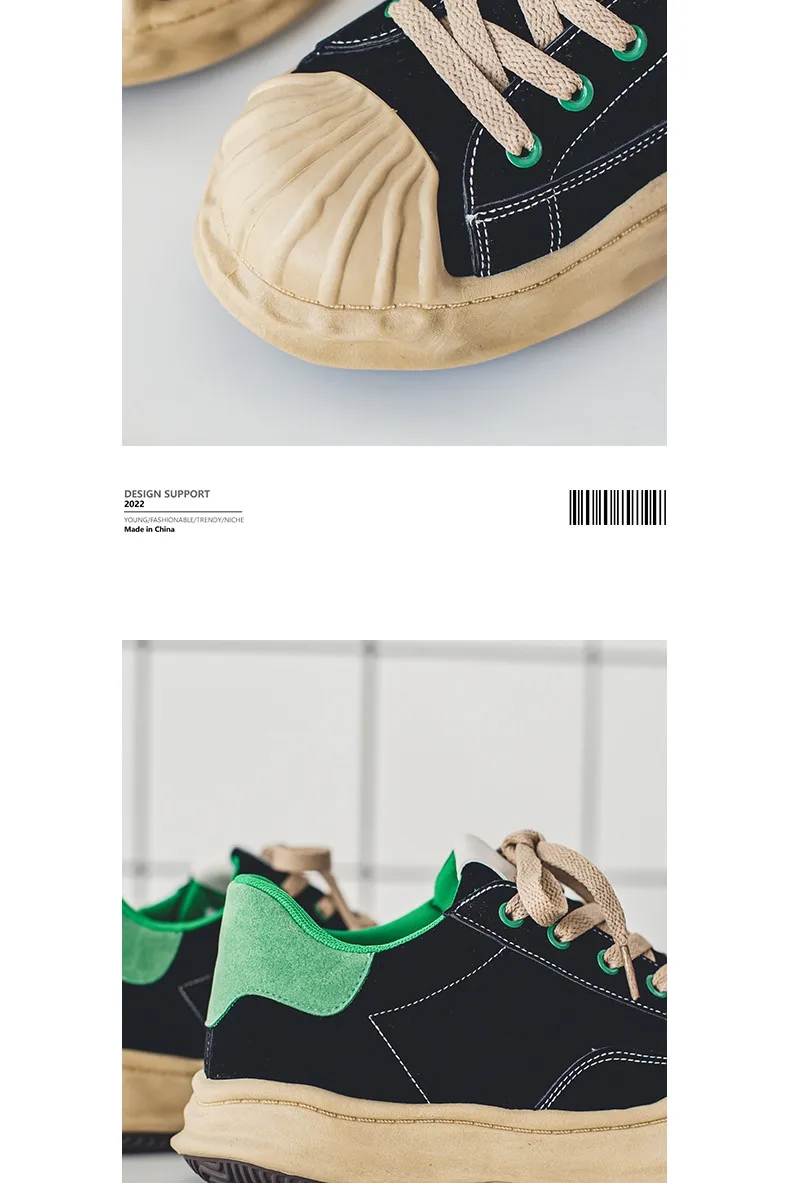 Harajuku Green Casual Sneakers Men Shellhead Vulcanized Shoes Men Street Hip Hop Canvas Sneakers Men Platform Footwear