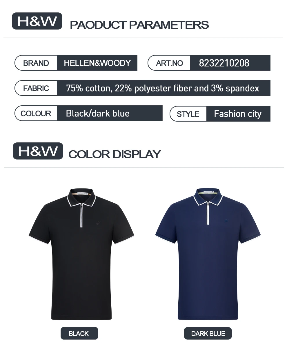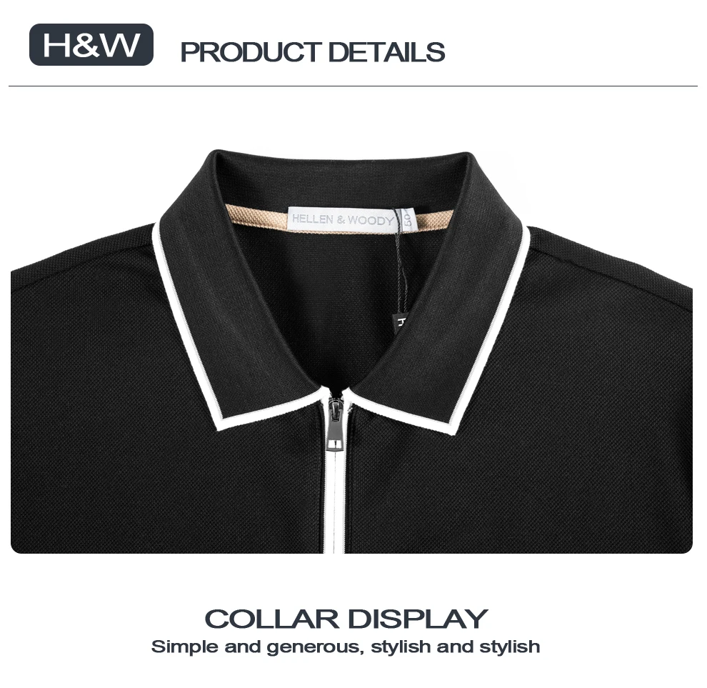 Hellen&Woody Business Polo Shirt for Men 2022 Summer New Luxury Men's Clothing Zipper Embroidery Design Short-Sleeved
