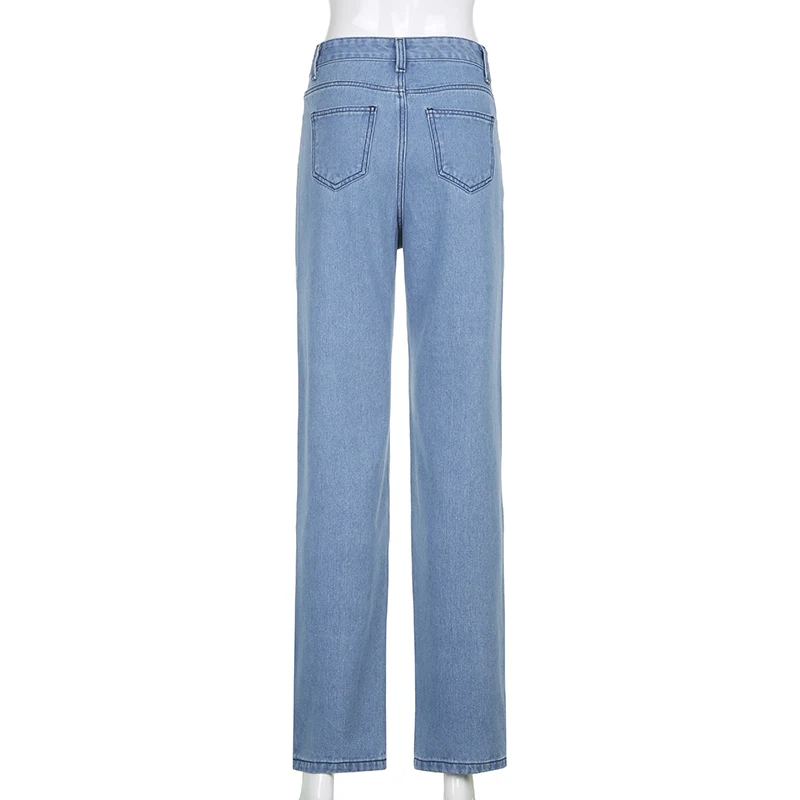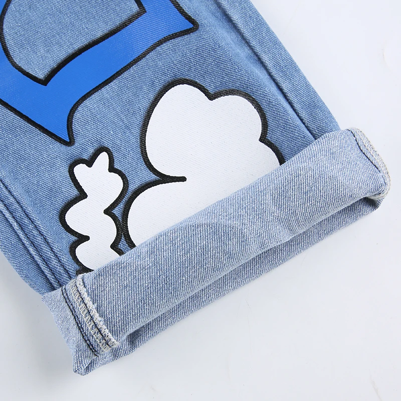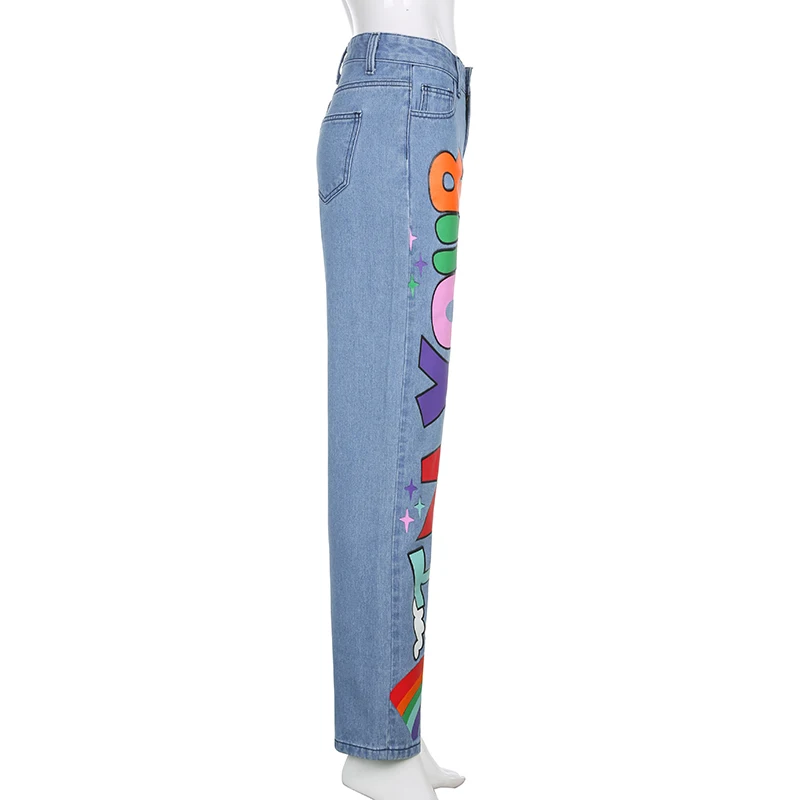 HEYounGIRL Letter Print Straight Jeans Women Blue High Waist Long Trousers Ladies Harajuku Fashion Skinny Denim Pants Capris