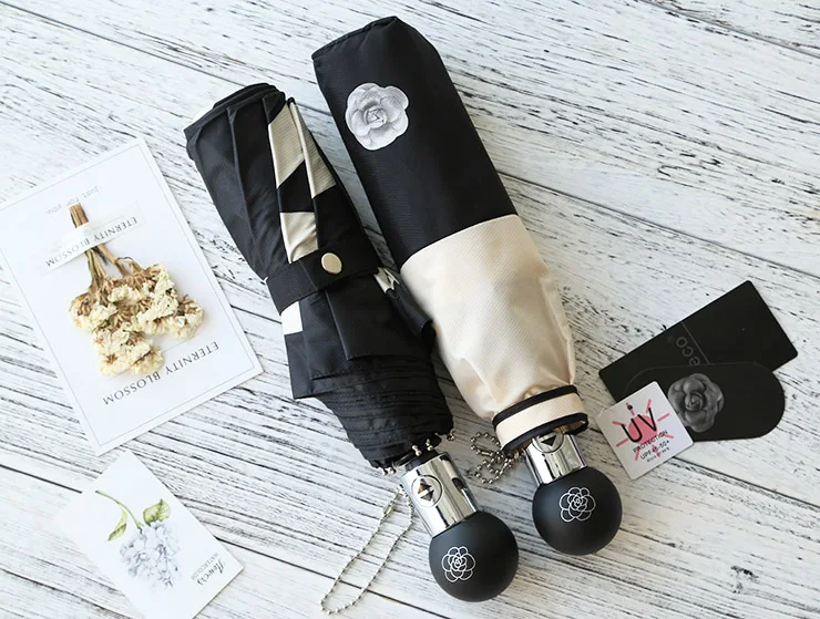 High-End Small Fragrant Camellia Automatic Umbrella Sun Shade UV Umbrella Classic Women's Umbrella