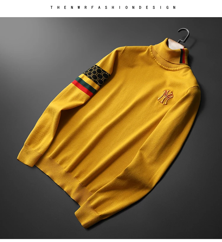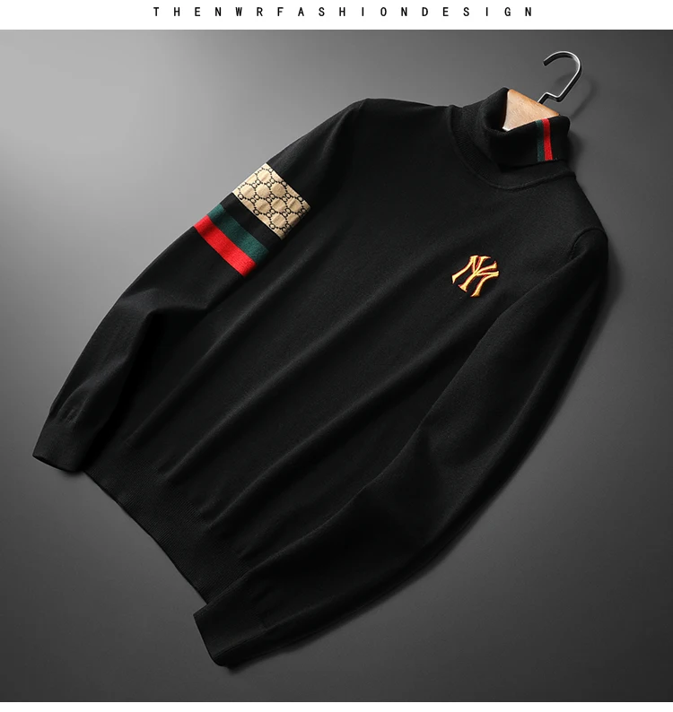 High quality Designer Fashion Brand knitted Embroidery High Neck Sweater Men's 2021 Autumn Winter Warm Casual Men's Wear