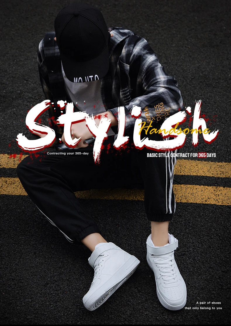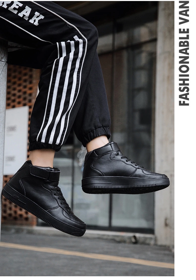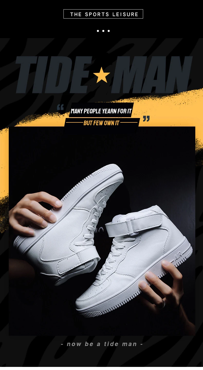 High Solid Skateboarding Shoes Men Hard-Wearing Sneakers with Velcro Outdoor Trainer Lace Up Casual Gym Sport Walking Shoes