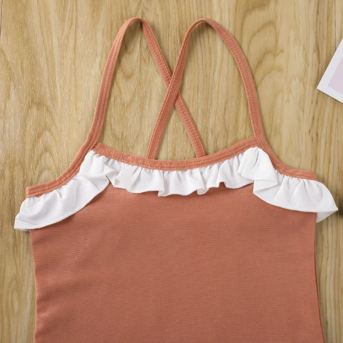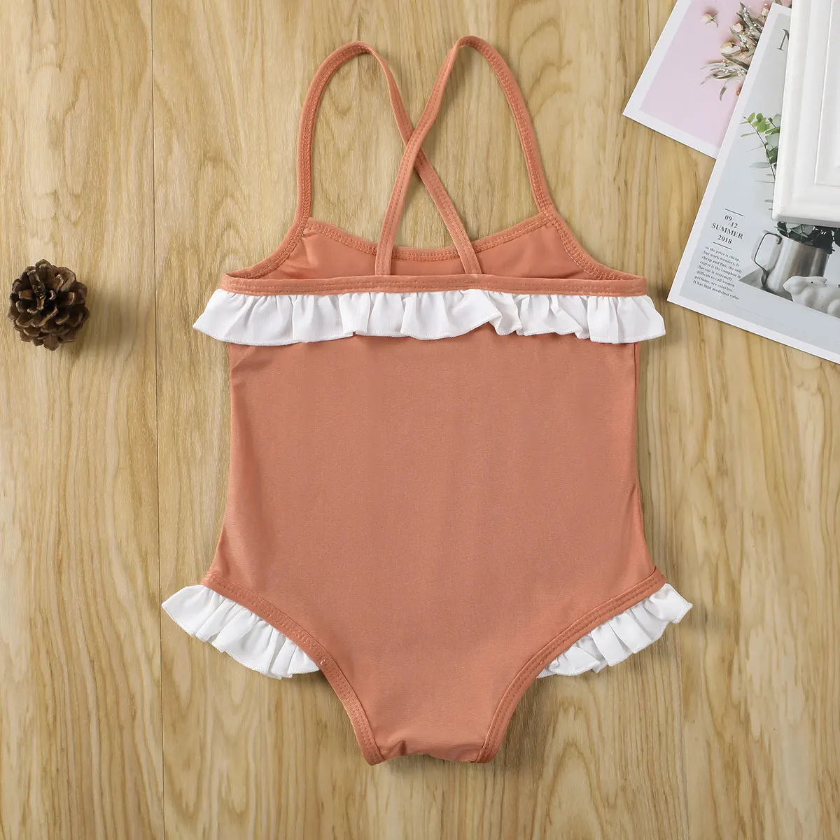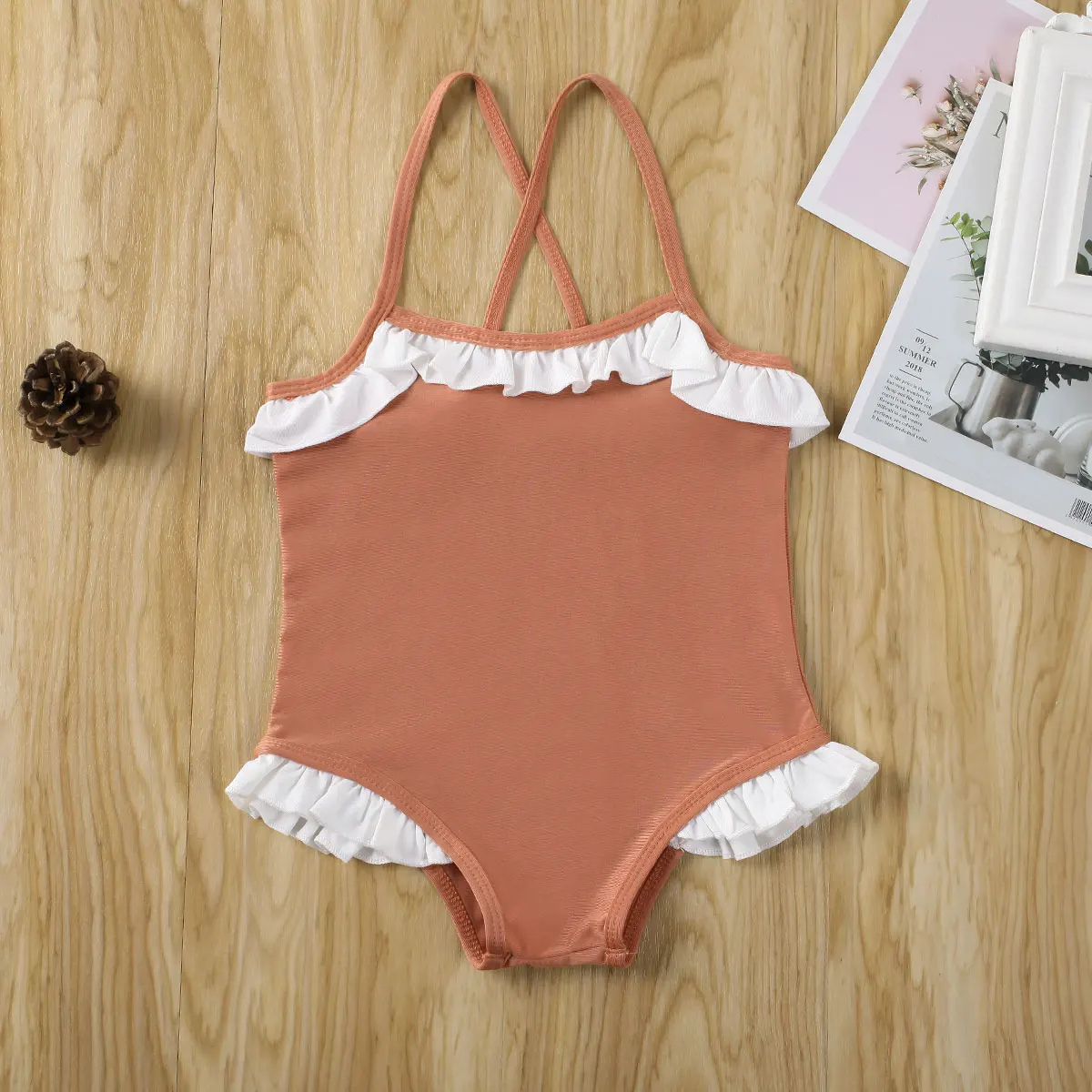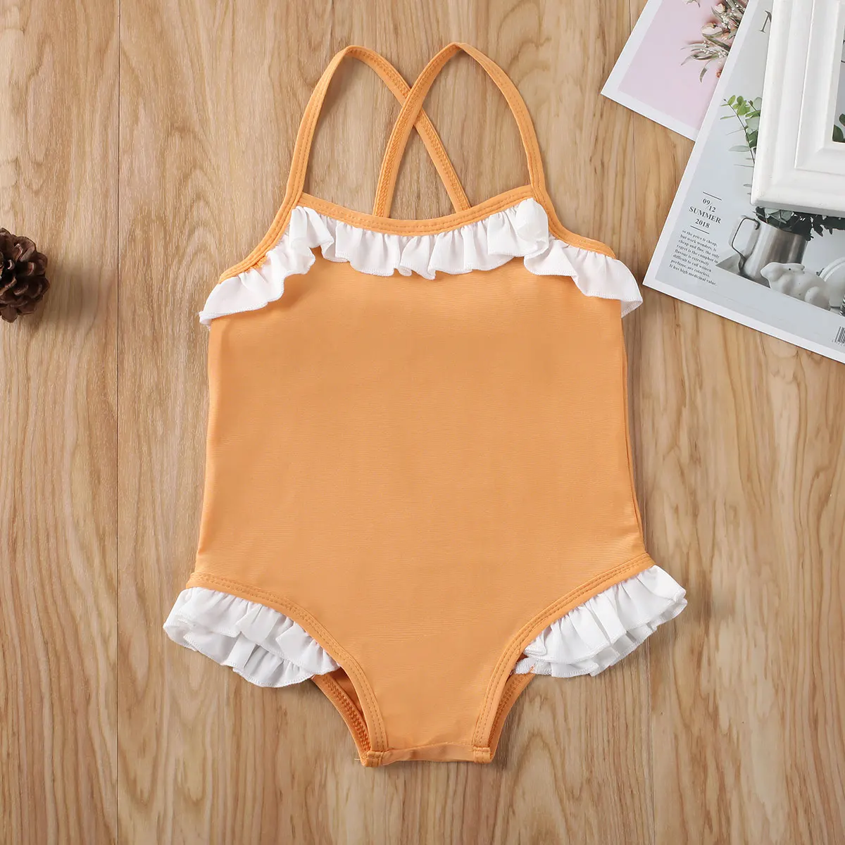 Hirigin New Kids Swimwear Baby Girl One-Piece Swimsuit Lace Frill Strap Monokini Baby Girl Criss-Cross Bathing Suit 1-5Y