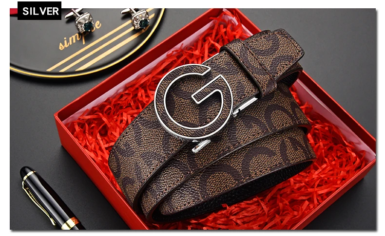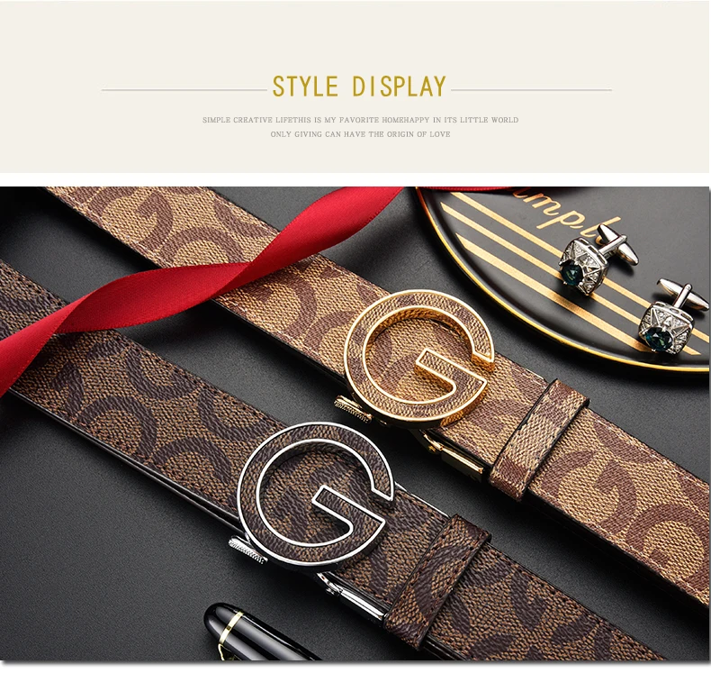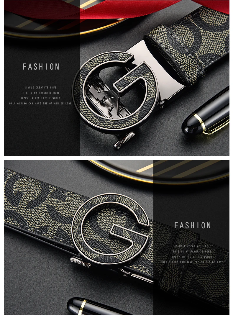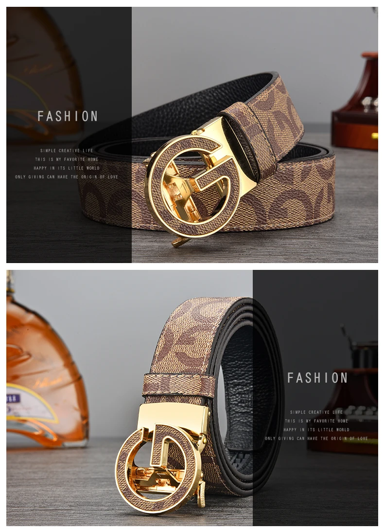 HITONBULL Real Leather Men Belt Unique Design G Automatic Buckle High Quality Cowhide Mens Belts Fashion Luxury Male Waistband