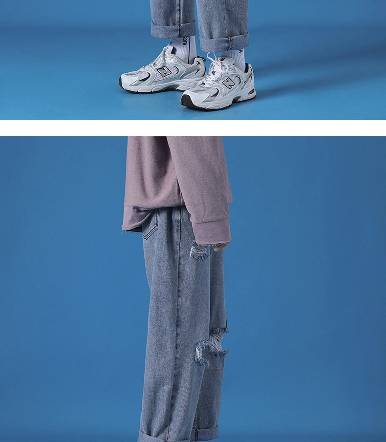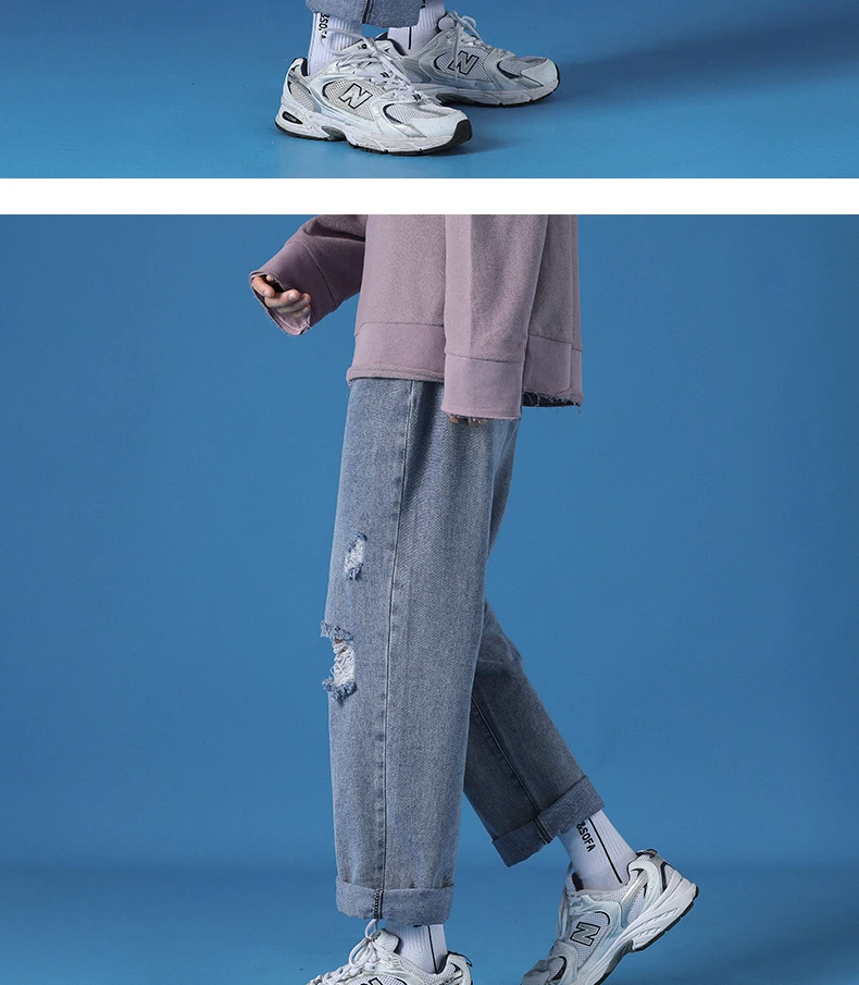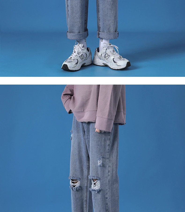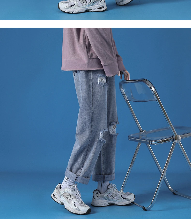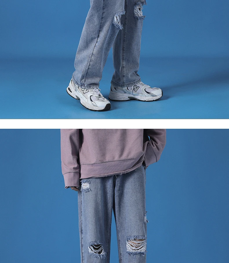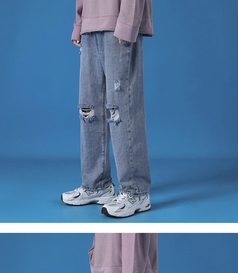 Hole Jeans Pants Men 2021 New Fashion Casual Japanese Retro Men Jeans Trousers S-5XL Large Size Harajuku Korean Blue Men Pants