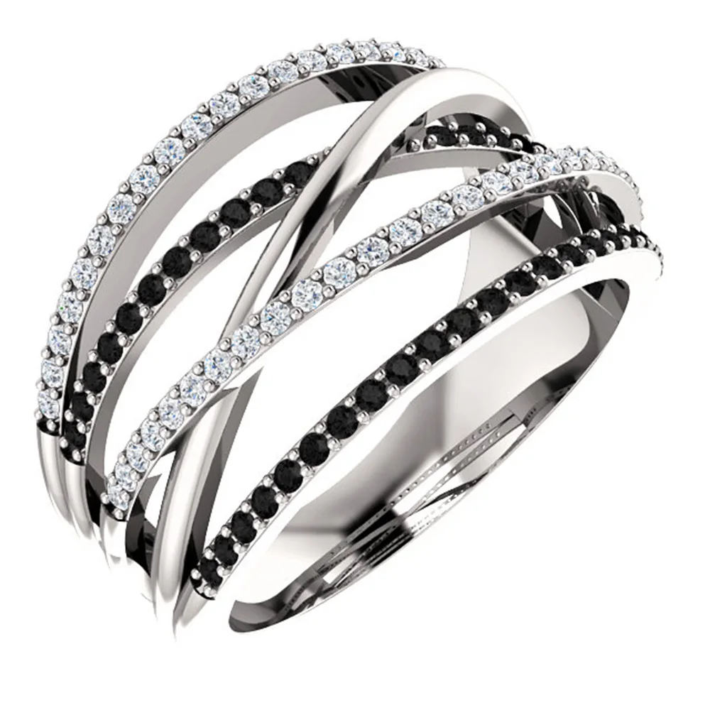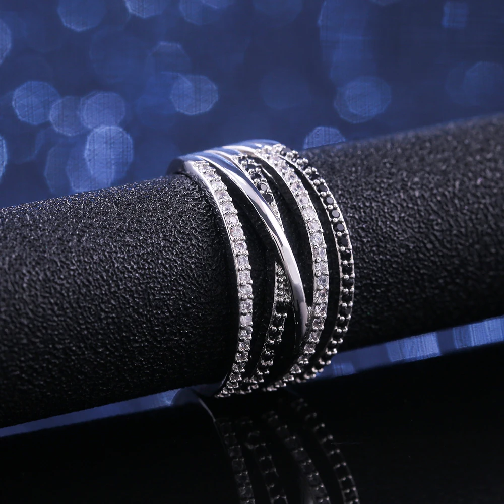 Huitan New Twist Ethnic Style Women Finger Rings With Black&White Stone Micro Paved Surprise Gift For Women Trendy Jewelry Rings