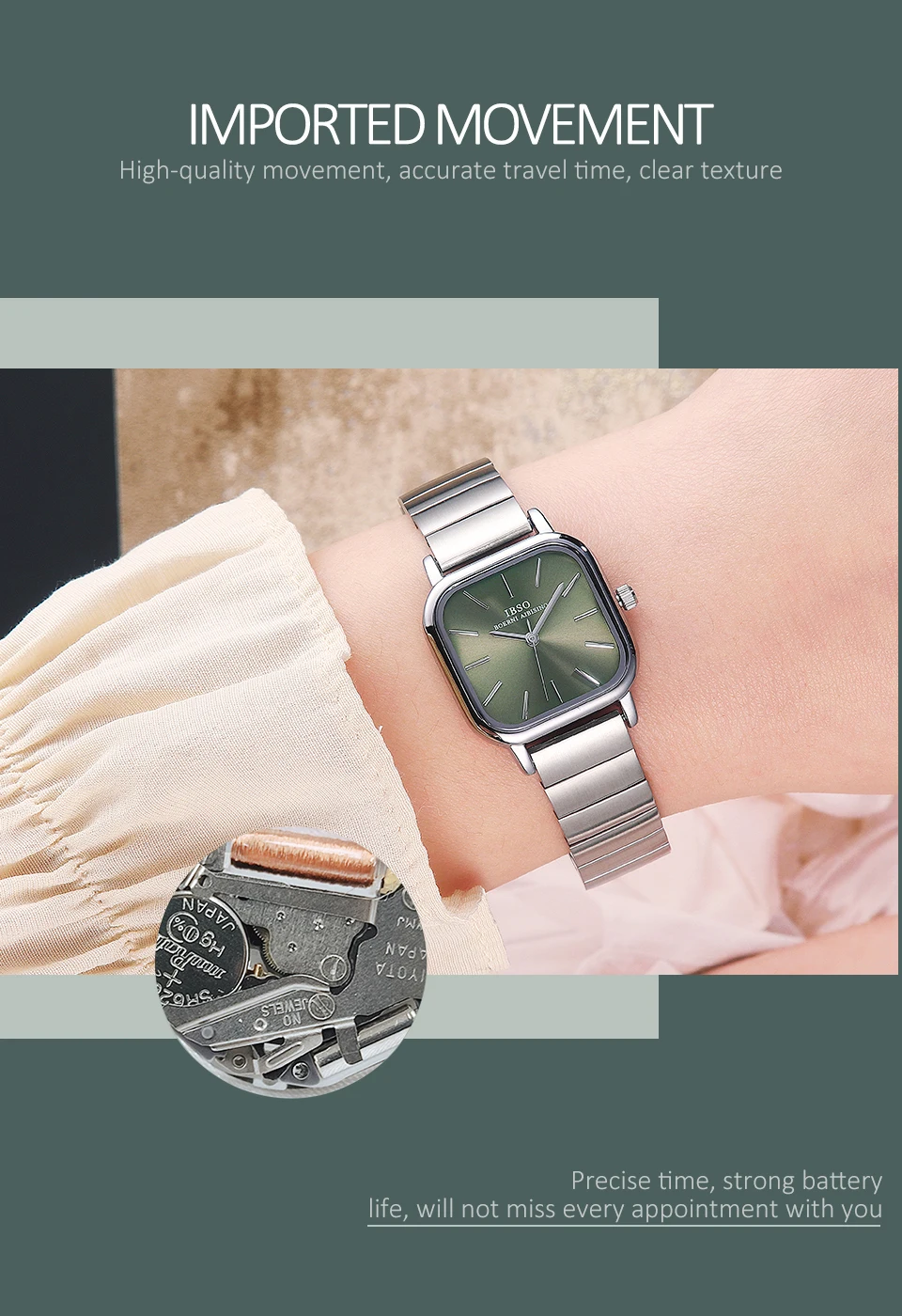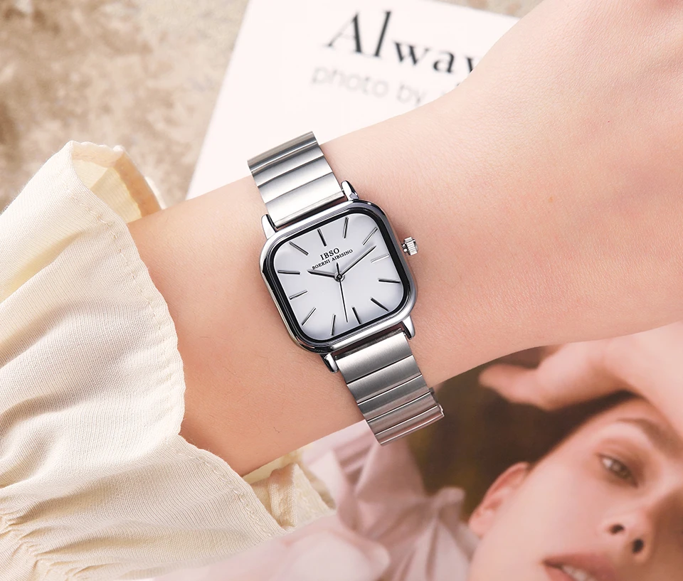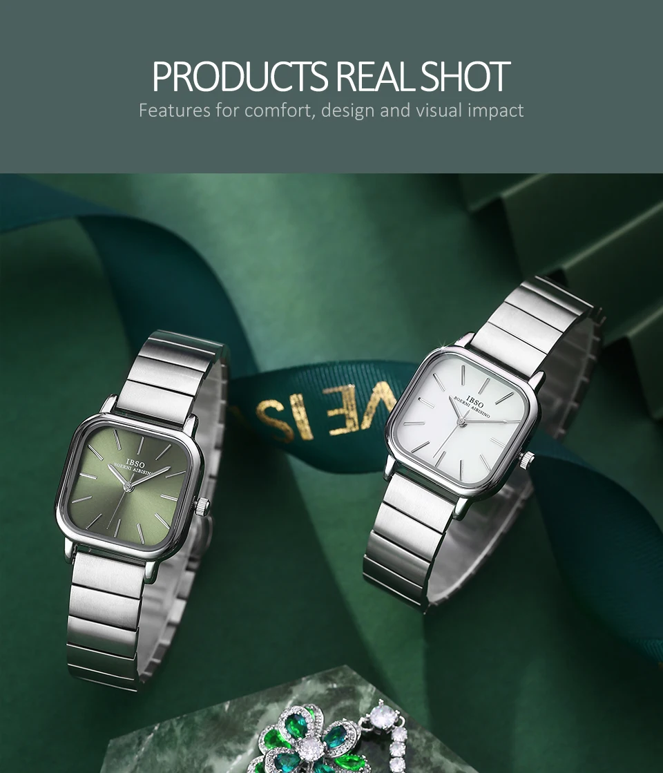 IBSO New Women Quartz Watches Waterproof Japanese Movement Stainless Steel Strap Square Dial Elegant Female Wrist watches
