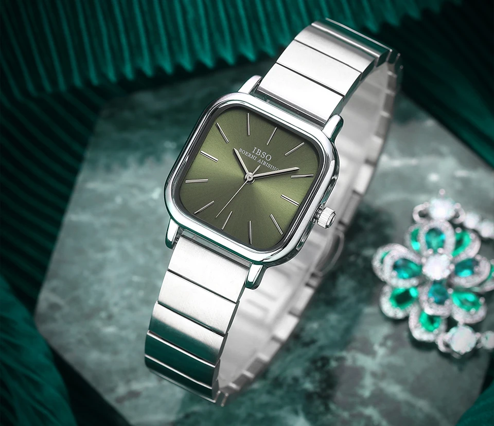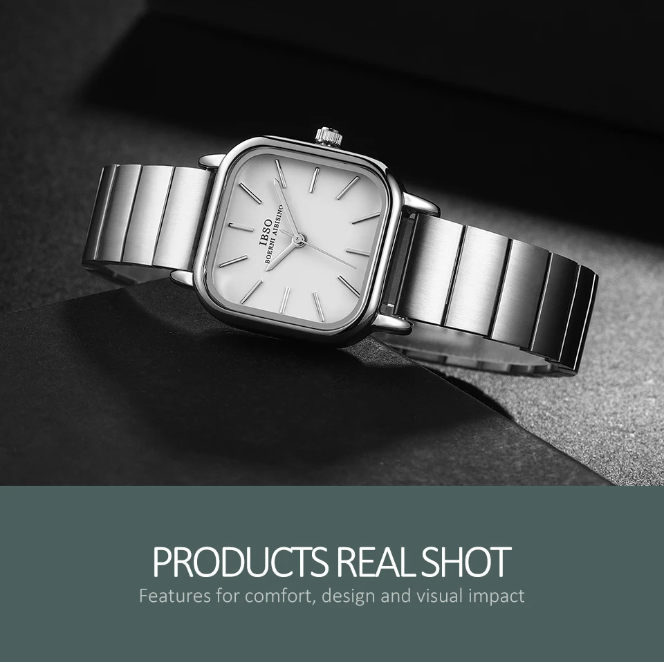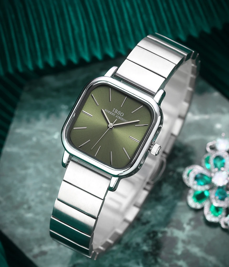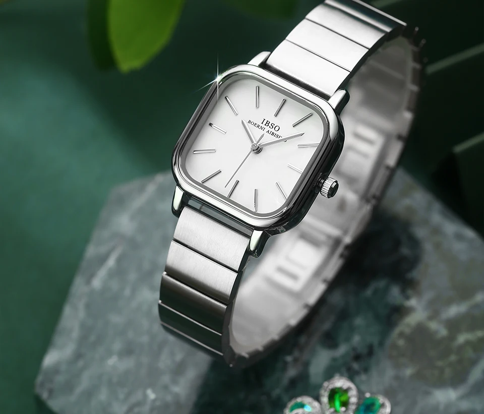 IBSO New Women Quartz Watches Waterproof Japanese Movement Stainless Steel Strap Square Dial Elegant Female Wrist watches