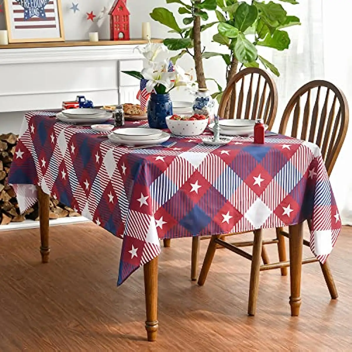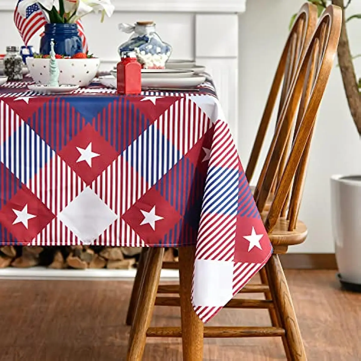 Independence Day Rectangle Tablecloth Kitchen Table Decoration Buffalo Plaid Stars Waterproof Tablecloth Party Decor