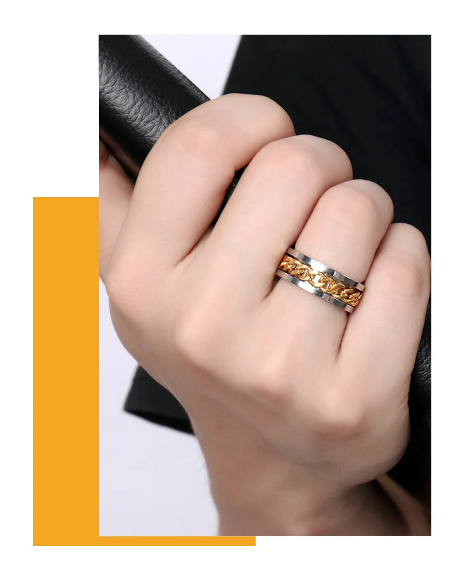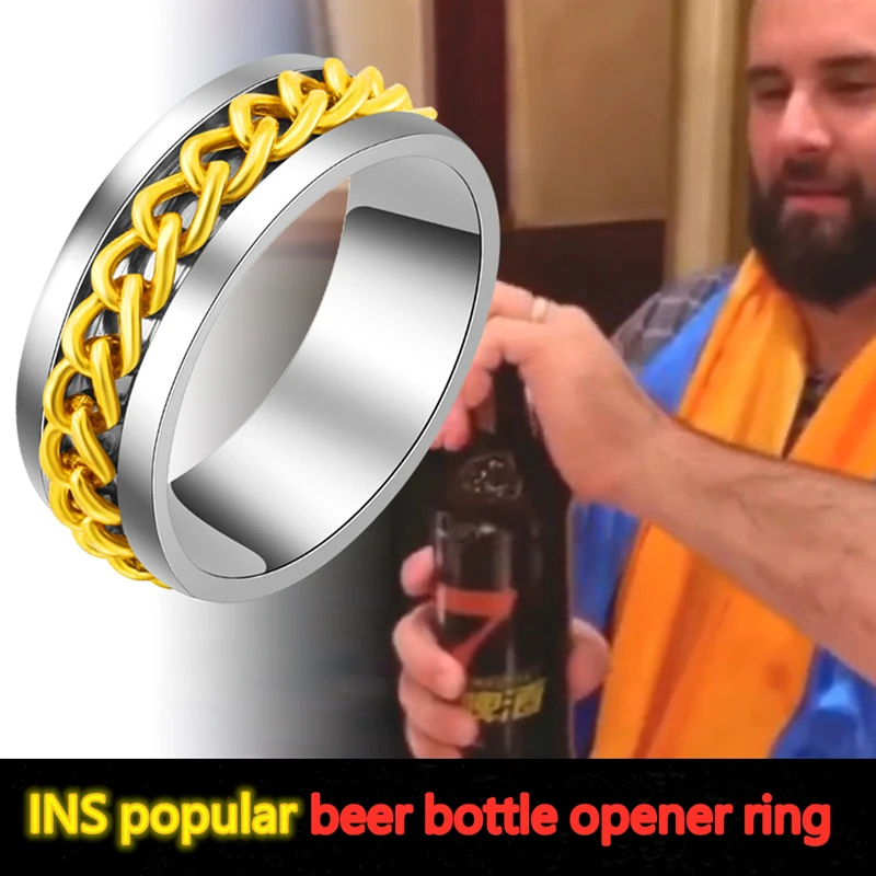 Ins Fashion Rotatable chain Rings For Women Men Spinner Ring Stainless Steel Chain Ring Men's Titanium Steel Bottle Opener Ring