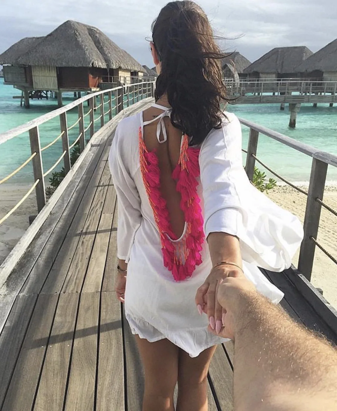 Ins Hot Backless Tassel Bikini Cover Up Crochet Swimsuit Beach Dress Women Cover-Ups BeachWear Pareo