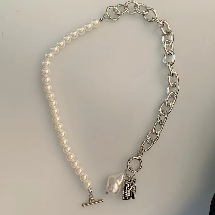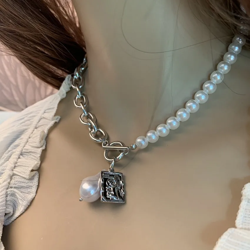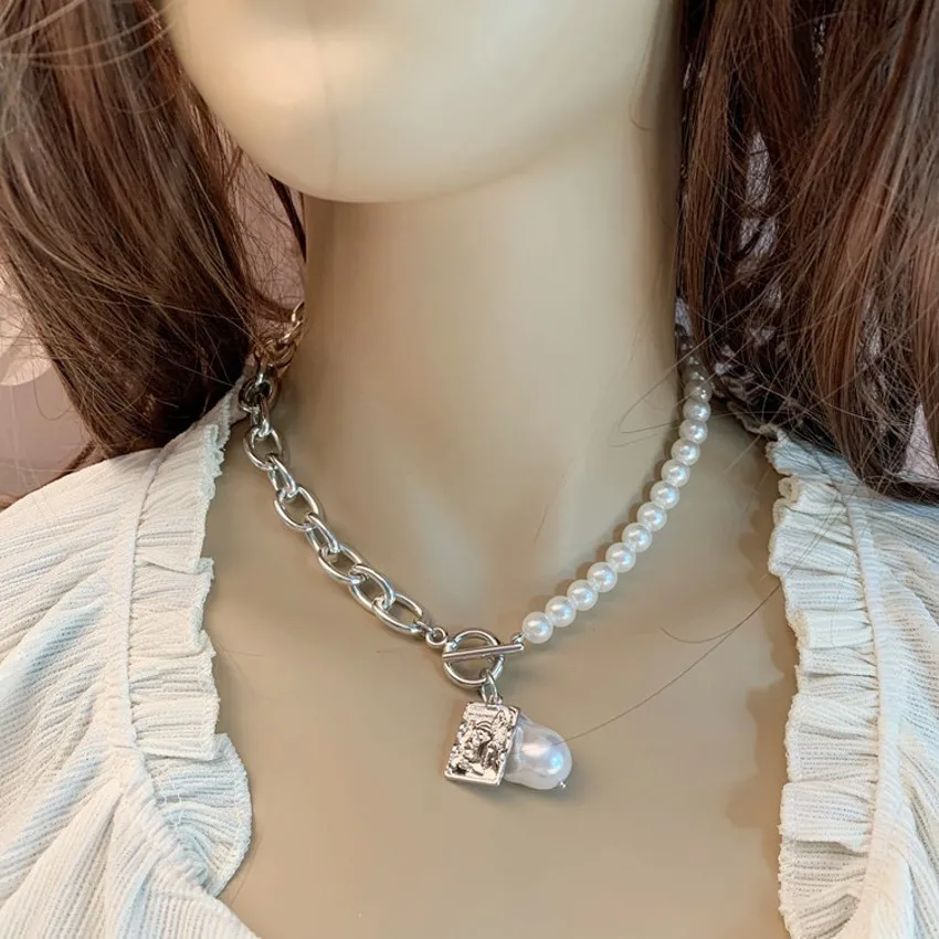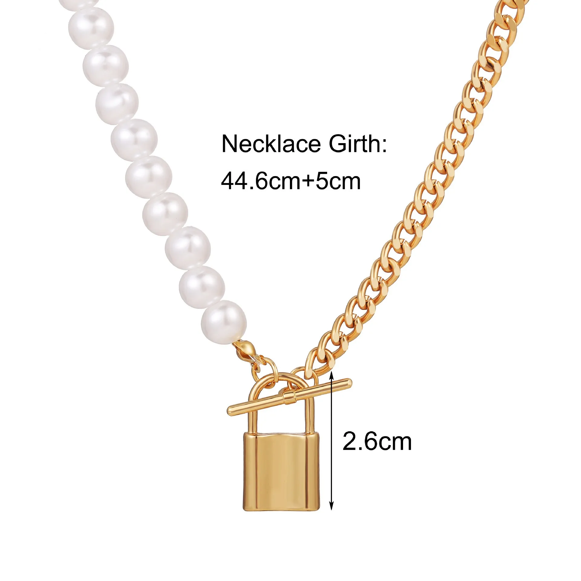Irregular Pearl Splicing chain Necklace Lock Pendant Bohemia Geometric Aangel Pendant Love Necklaces for Women Punk Jewelry
