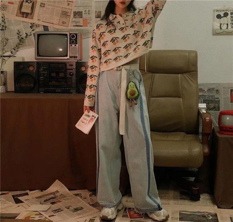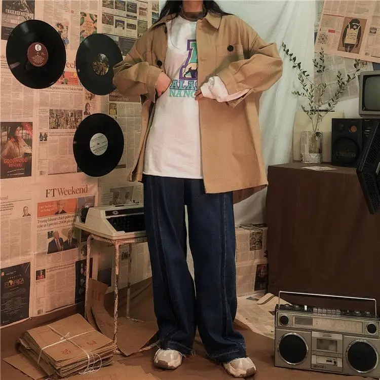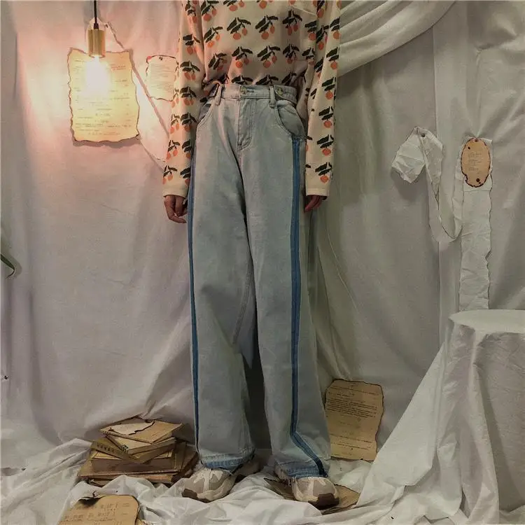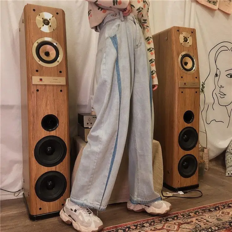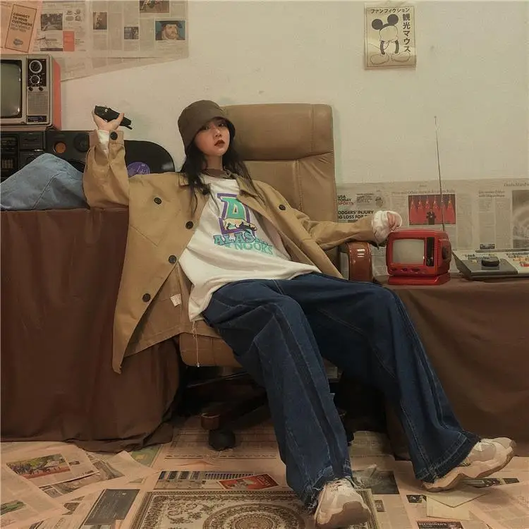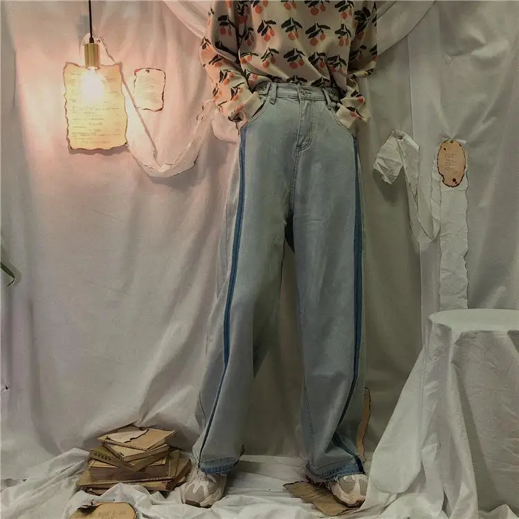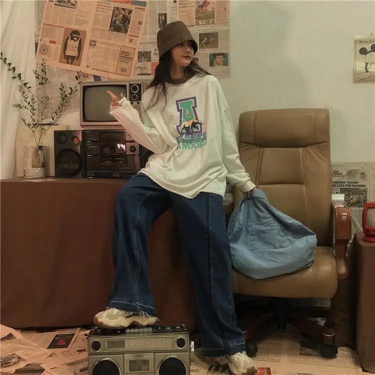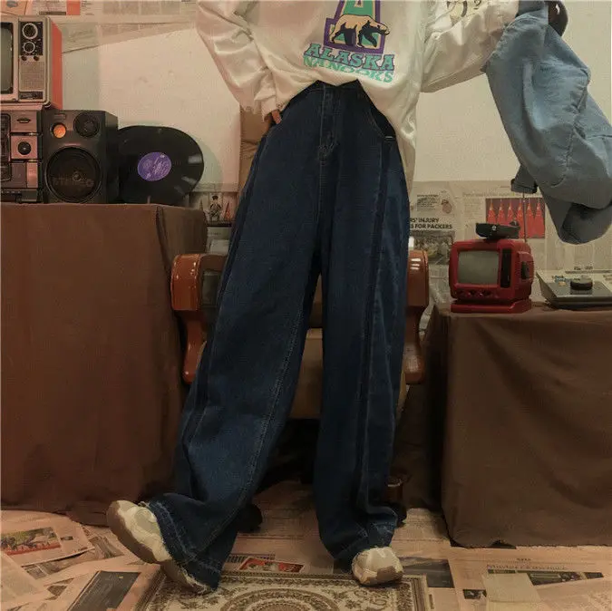 Jeans Women Wide Leg Trousers Panelled Vintage Washed Full Slouchy Jean Harajuku Student Autumn Leisure Fashion Loose Daily New