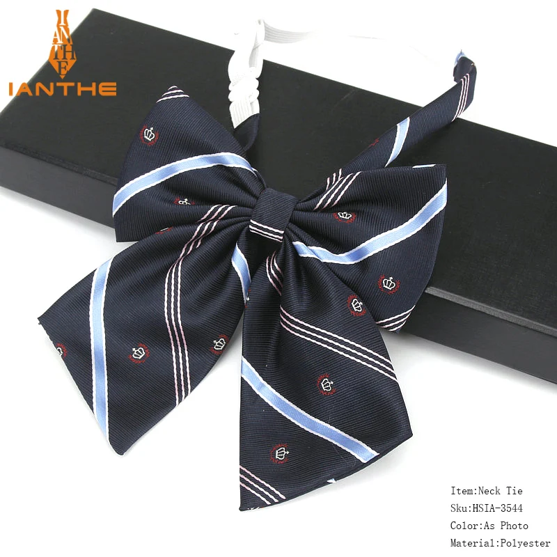 JK Bow Tie Striped Solid Uniform Collar Butterfly Cravat Japanese High School Girls Students Preppy Chic Free of Tying a Knot