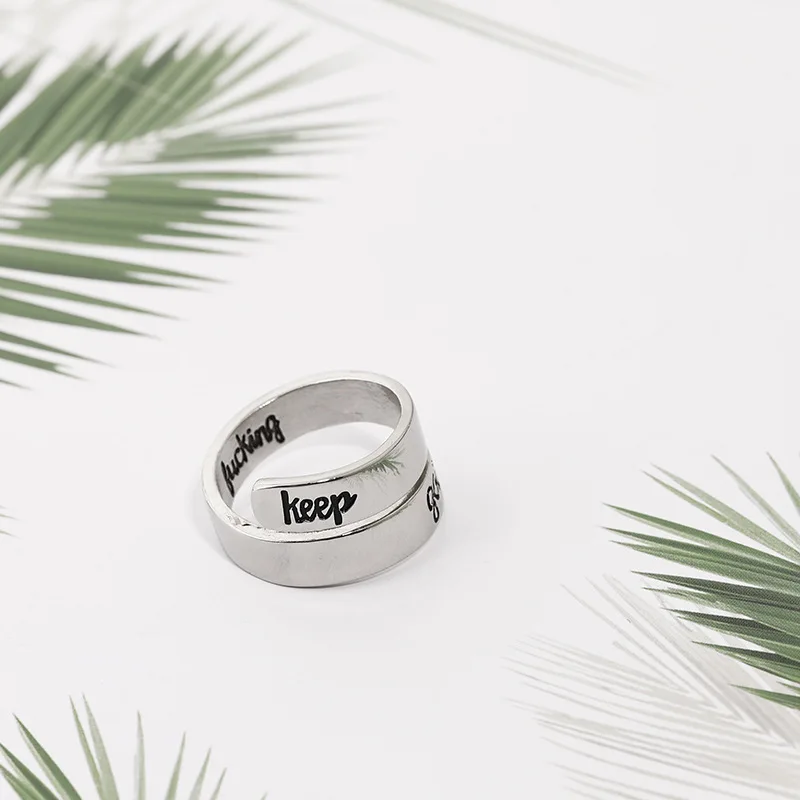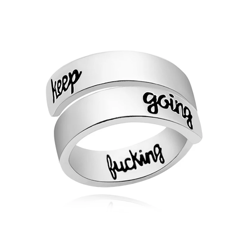 Keep Going Adjustable Double Winding Titanium Steel Ring Finger Jewelry 2021 Fashion Inspirational Gift For Men Women