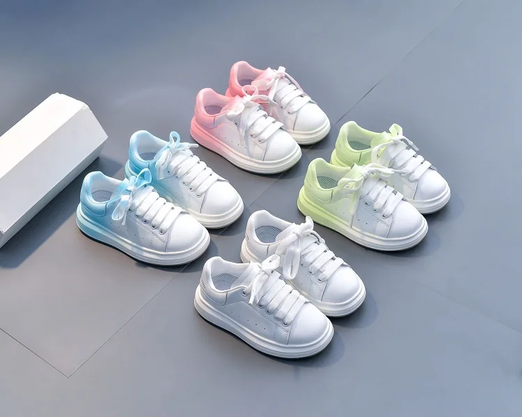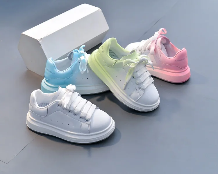 Kids Boy Sport Sneakers Gradient Color Girls Casual Sneakers Unisex Kids Genuine Leather Running Shoes Children Shoes Size 26-37