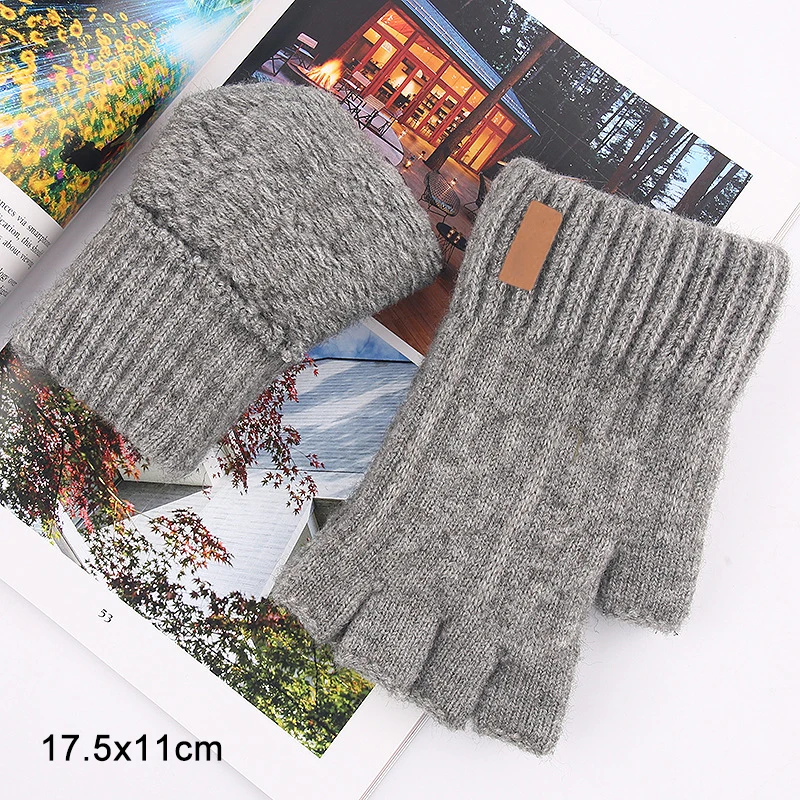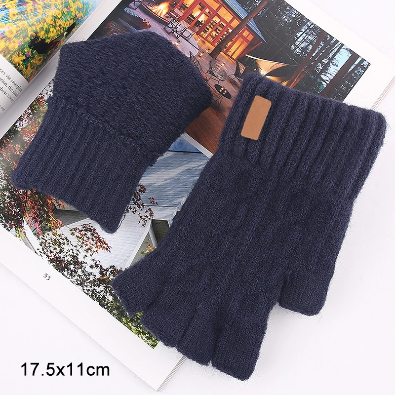 Knitted Fingerless Gloves Winter Thicken Warm Touch Screen Gloves Unisex Outdoor Stretch Elastic Warm Half Finger Cycling Gloves