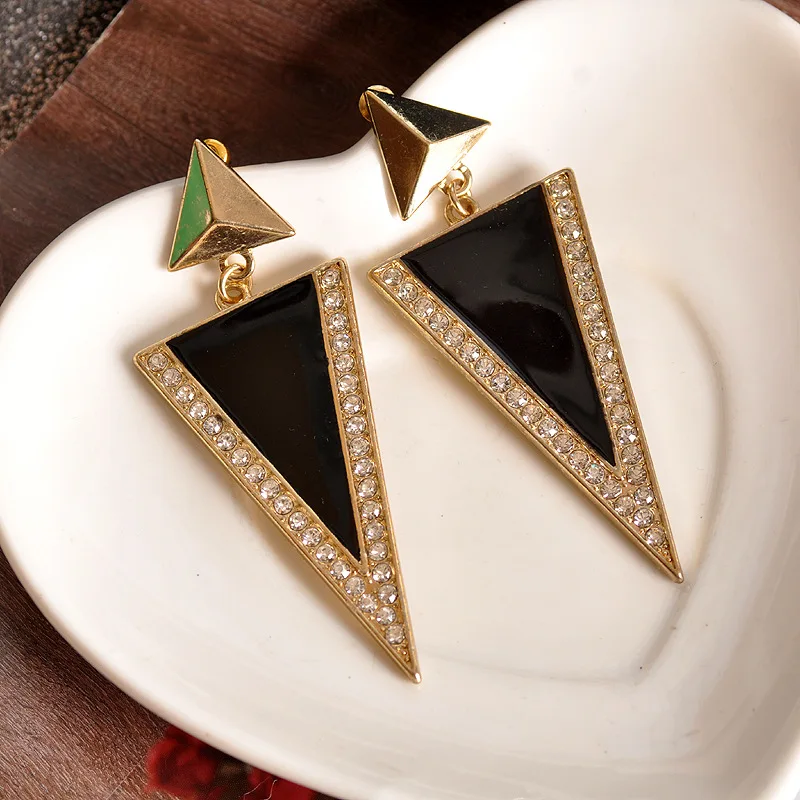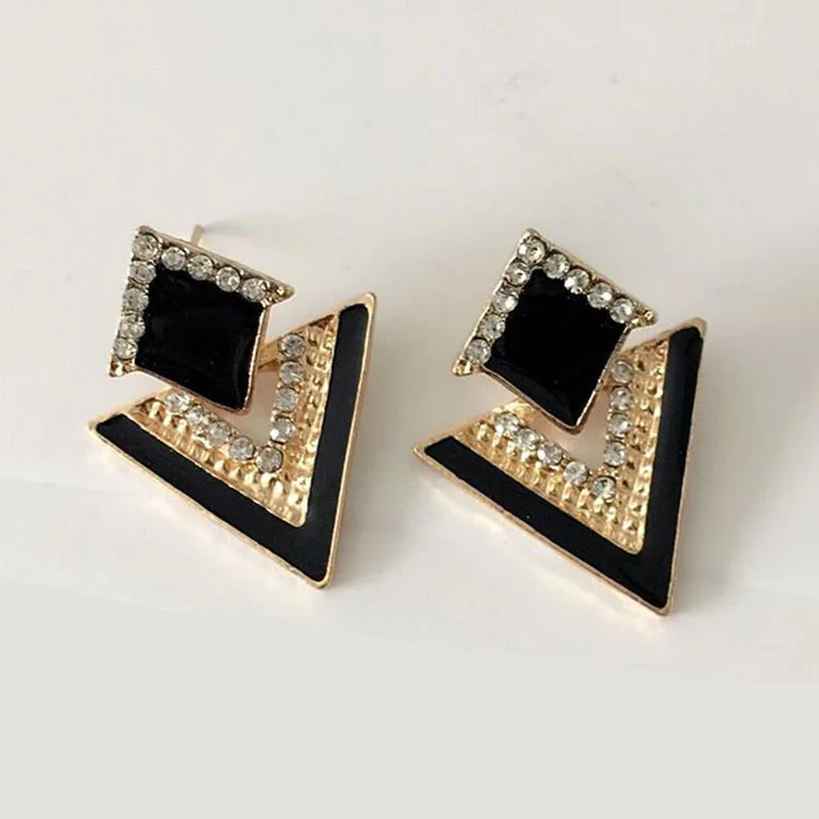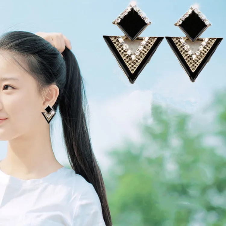 Korean Fashion Piercing Ear Vintage Woman Earring Diamond Inlay Jewelry-Accessories Drip Oil Triangle Earrings 2021 Trend New
