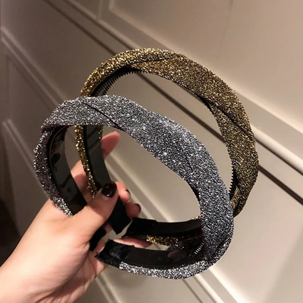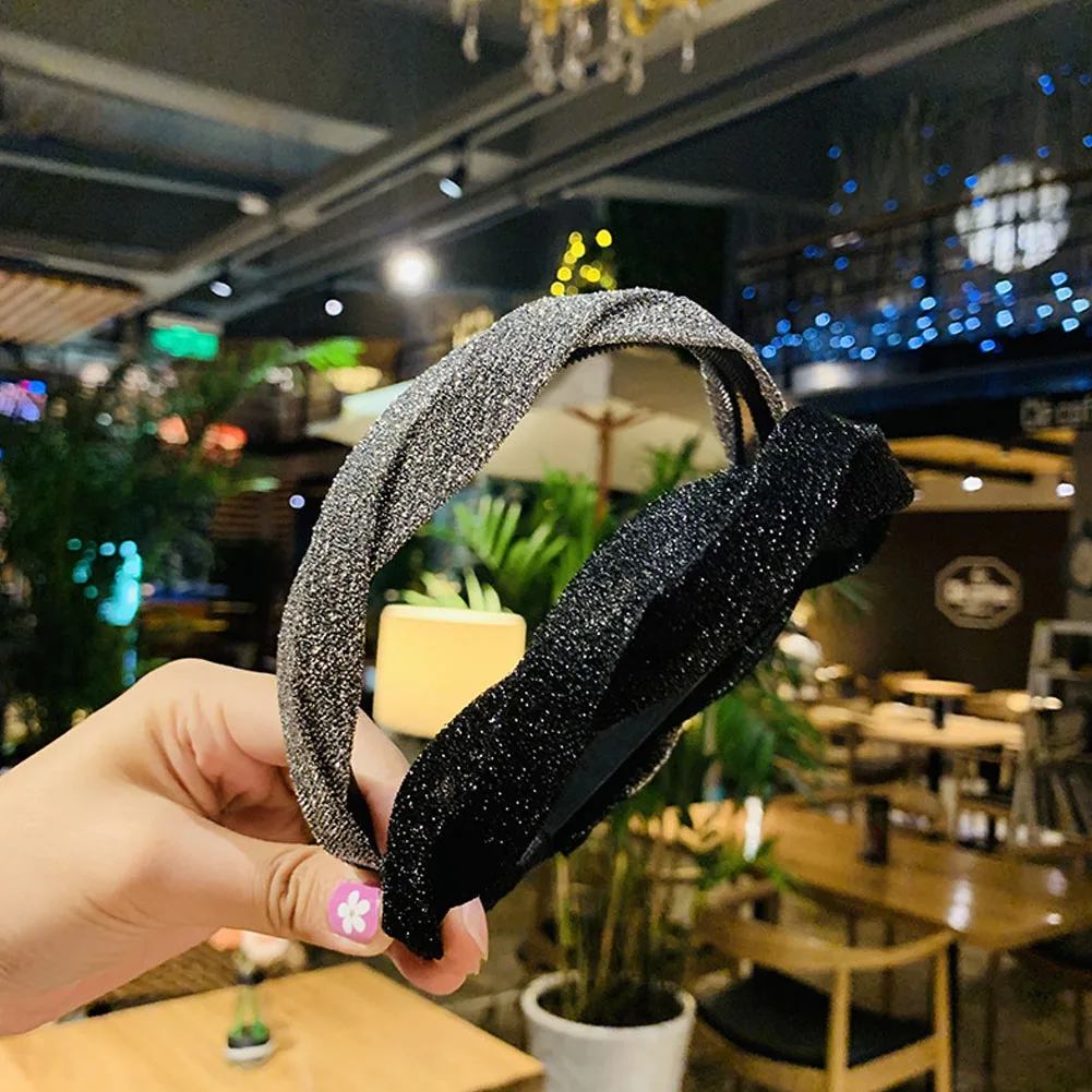 Korean Shiny Solid Hairbands Hair Accessories For Women Fashion Big Wave Cross Toothed Non-slip Bezel Headband Girl Hoop Jewelry