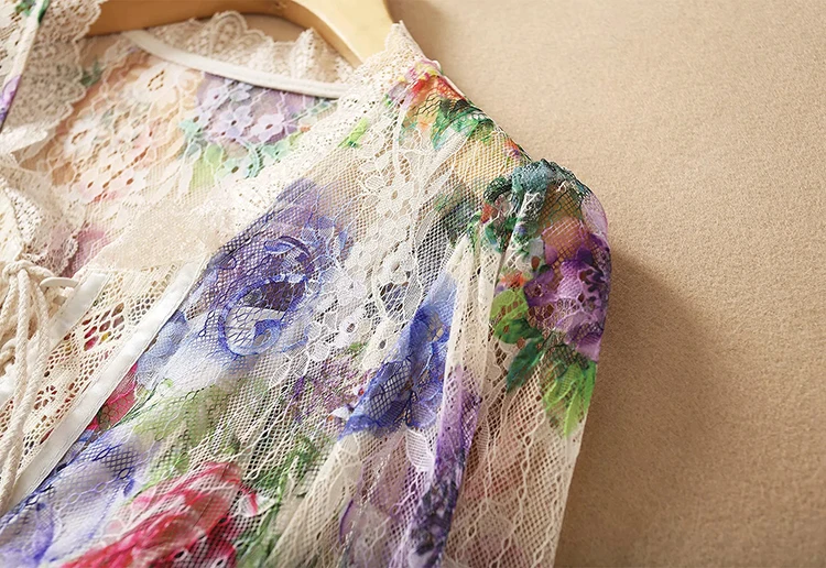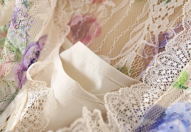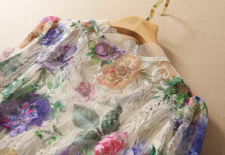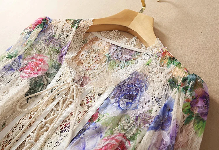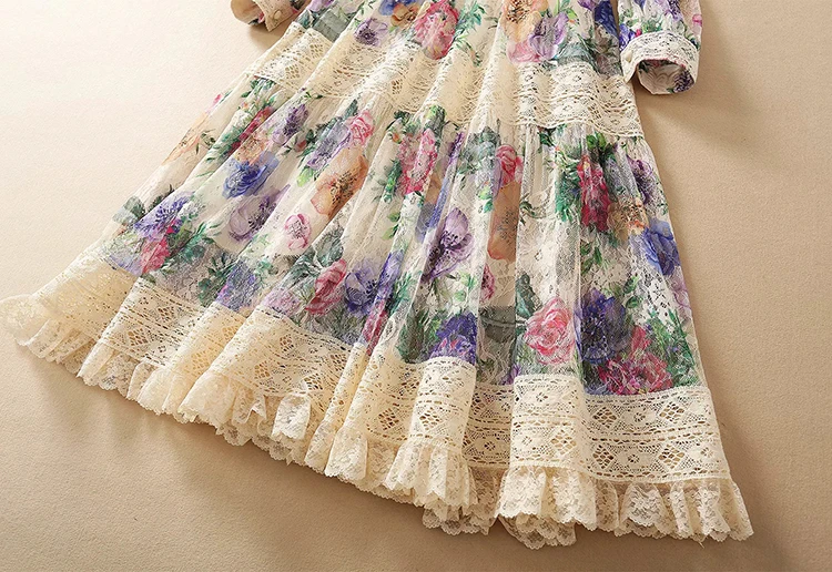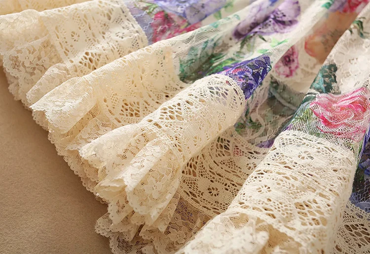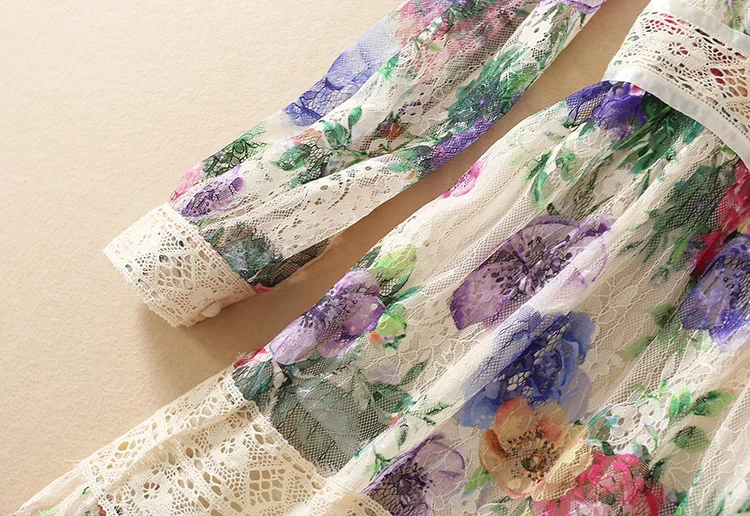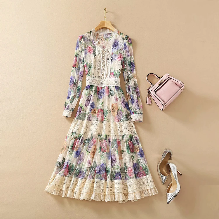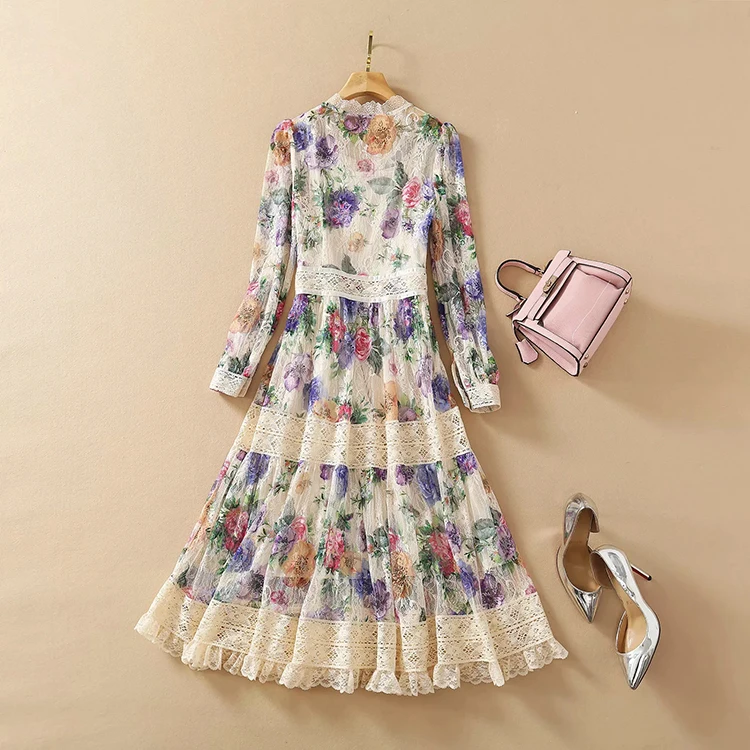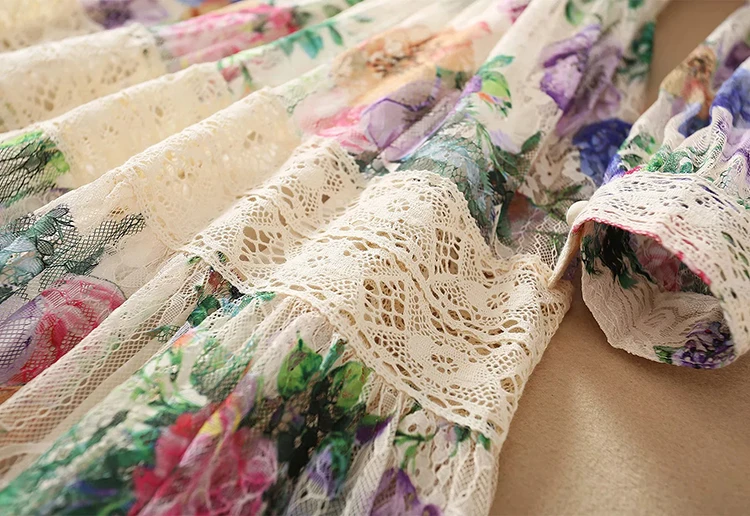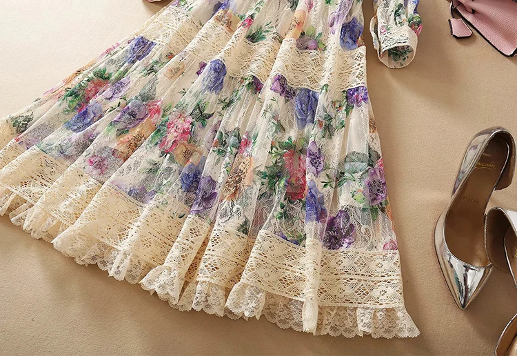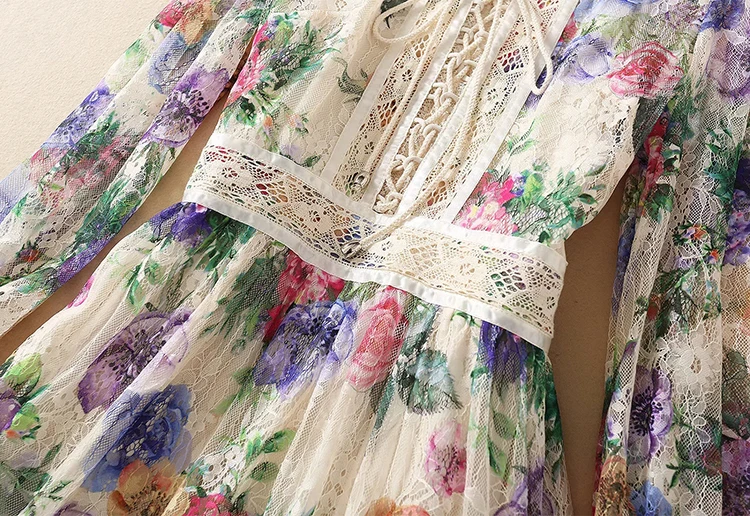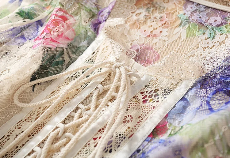 Lace Dress AELESEEN Bandage Flower-Print Party Elegant Long Summer Beach High-Quality