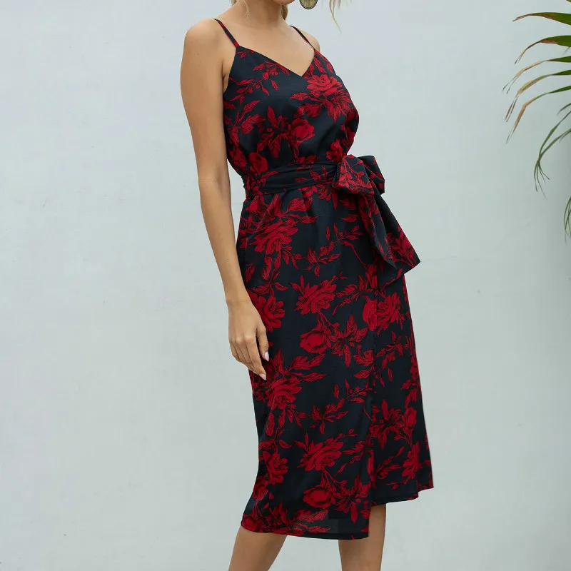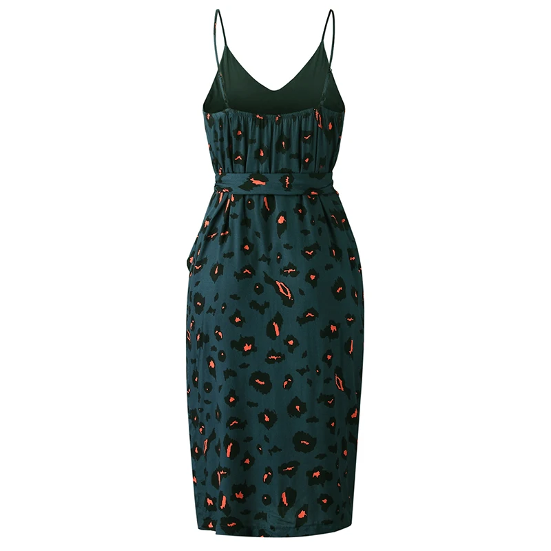 Leopard Print Girls Holiday Dress Women Sexy Sleeveless Split Dresses Vacation Boho V-Neck Beach Female Sashes Robe G1144