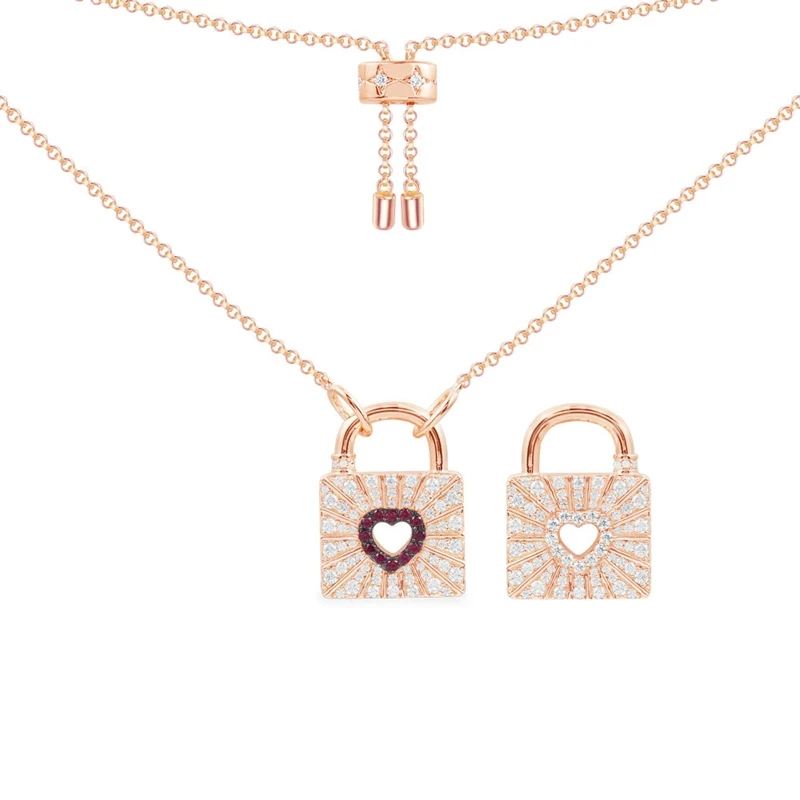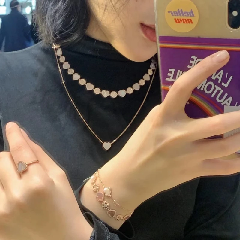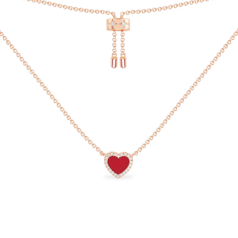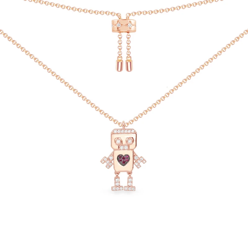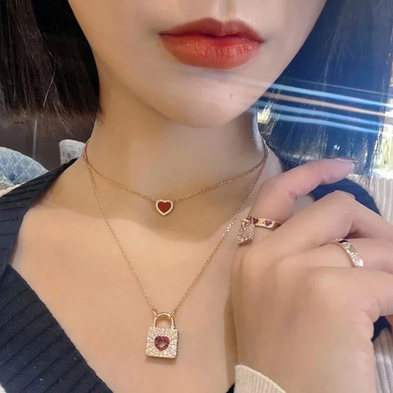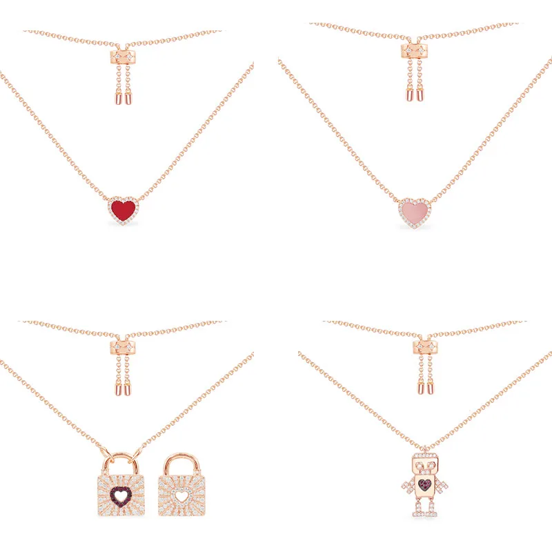LIDU High Quality 925 Sterling Silver 2022 New Pink Red Heart Necklace Robot Clavicle Chain For Valentine's Day Gift To Friends