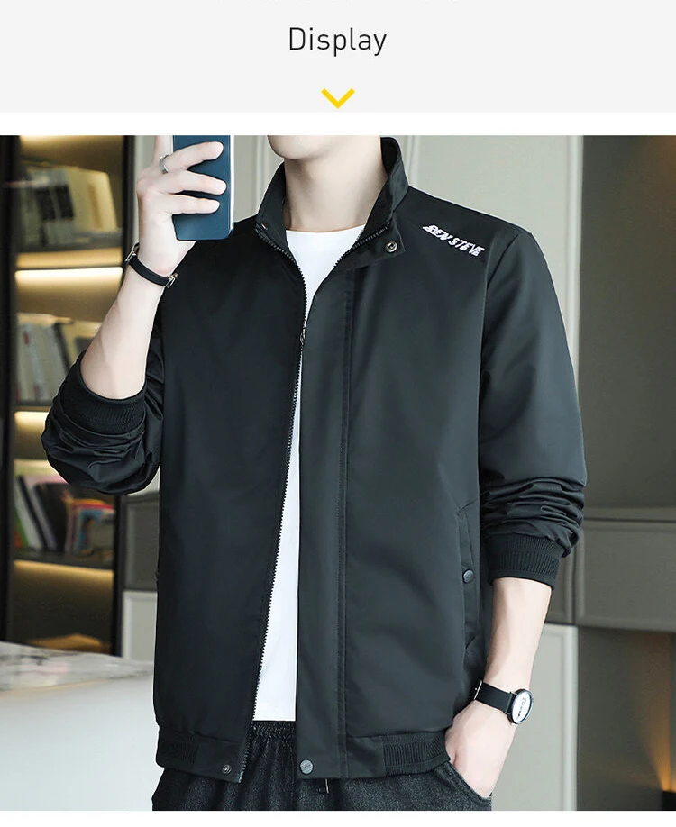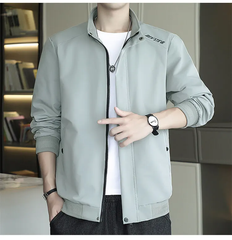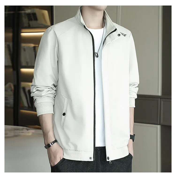 Lightweight Jacket Men Fashion Stand Collar Men Solid Color Mens Thin Coats Fall Fashion Clothing Zip Up Daily Wear Clothes