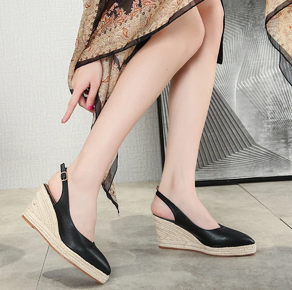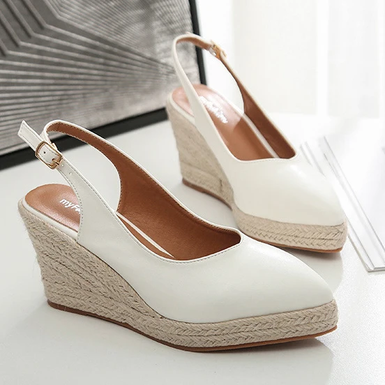 LIHUAMAO slingback women wedges shoes pointed toe slip on pumps high heel wedding shoes pumps office lady same style princess
