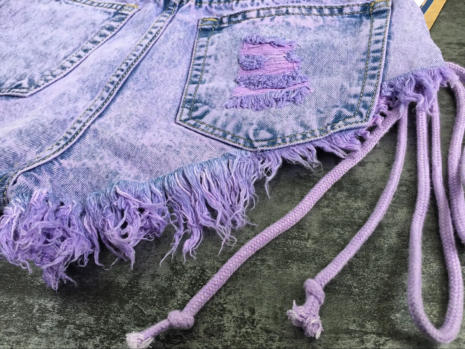 LOGAMI Highwaisted Mini Jeans Shorts Women Both Side Tie Mini Short Sexy Denim Shorts Jeans