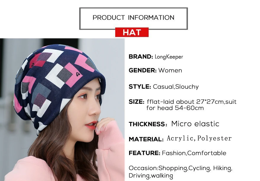 LongKeeper Women's Hat Fashion Beanies Ladies Soft Slouchy Bonnet Autumn Skullies Winter Cap Scarf Gorros Mujer Invierno