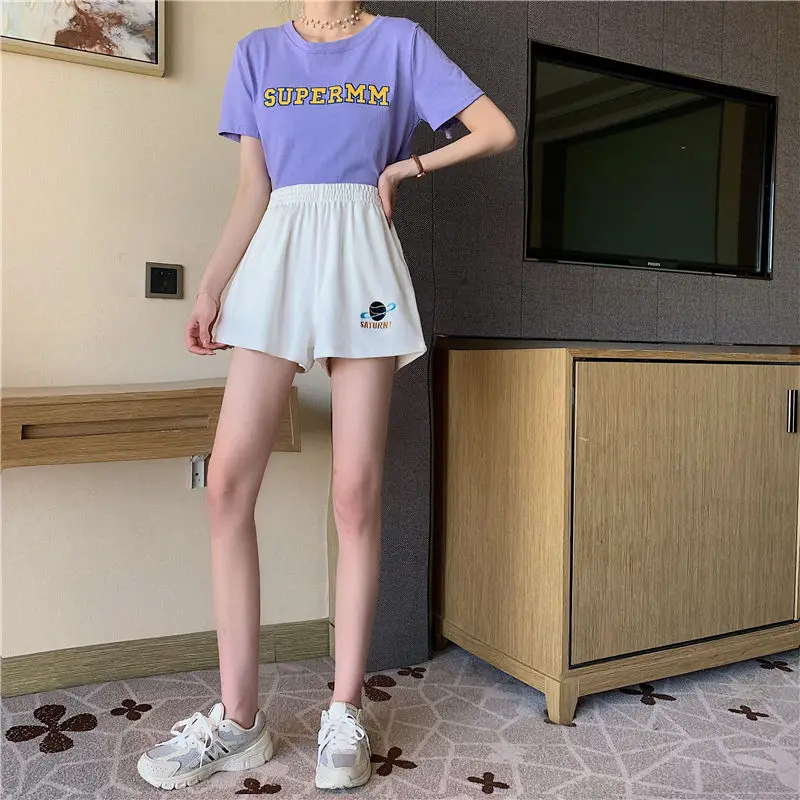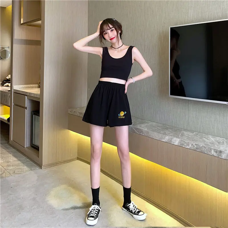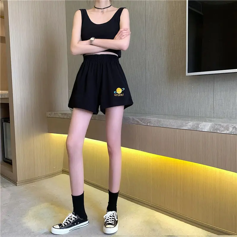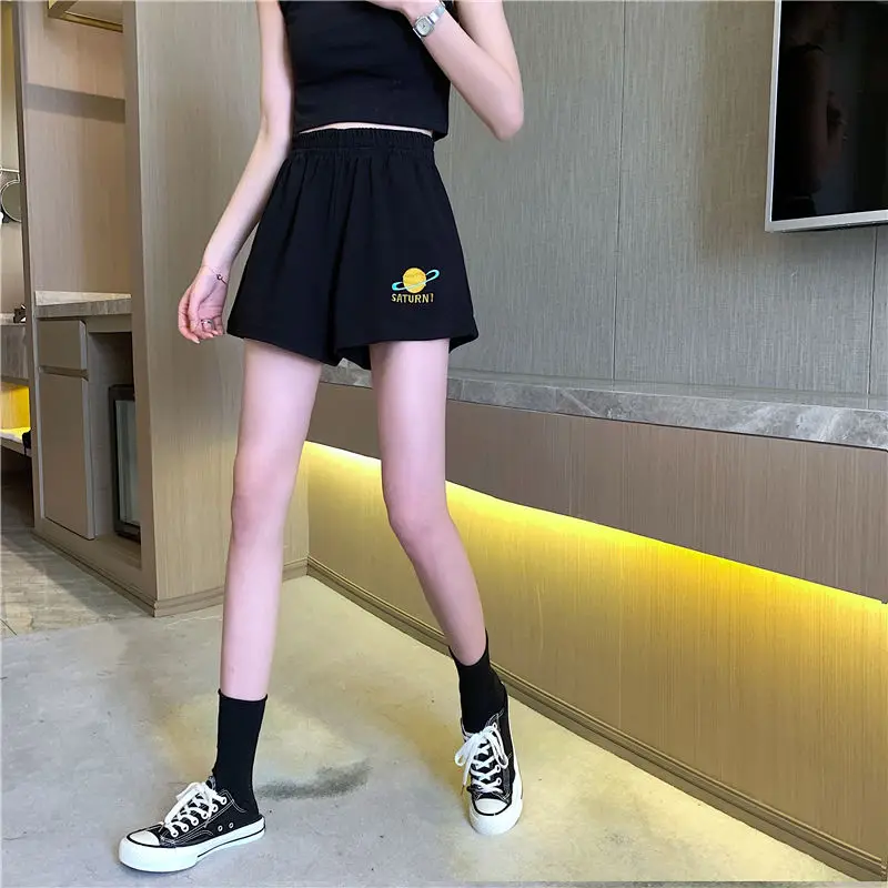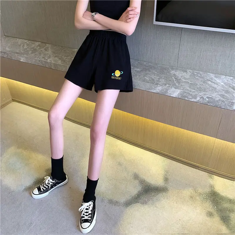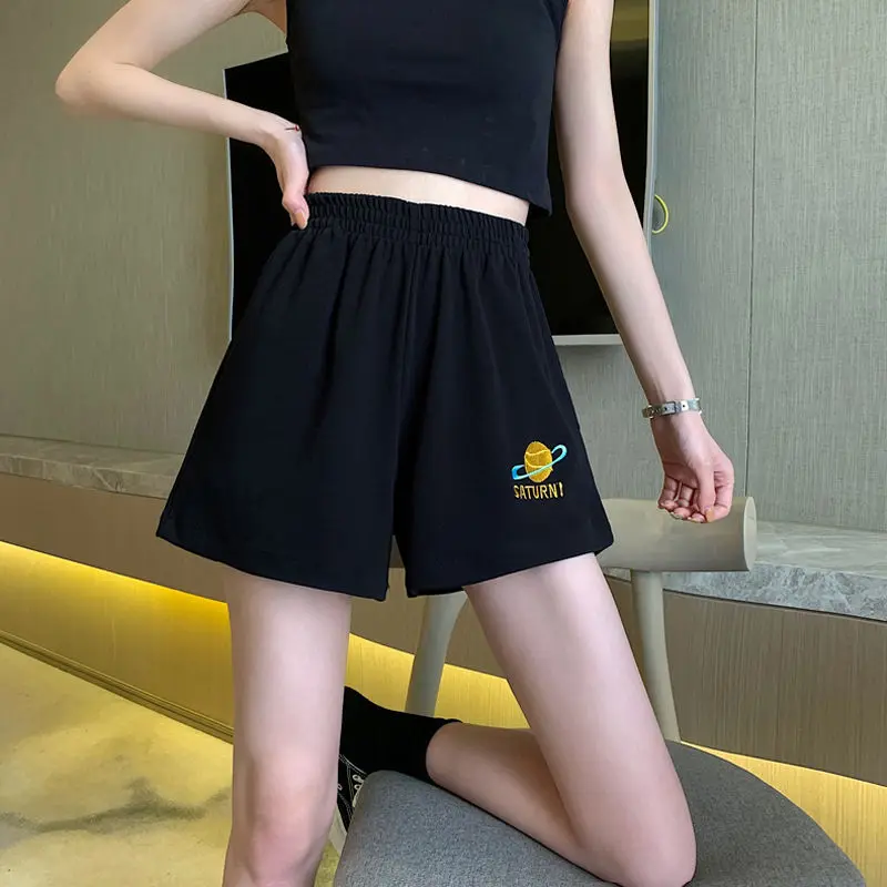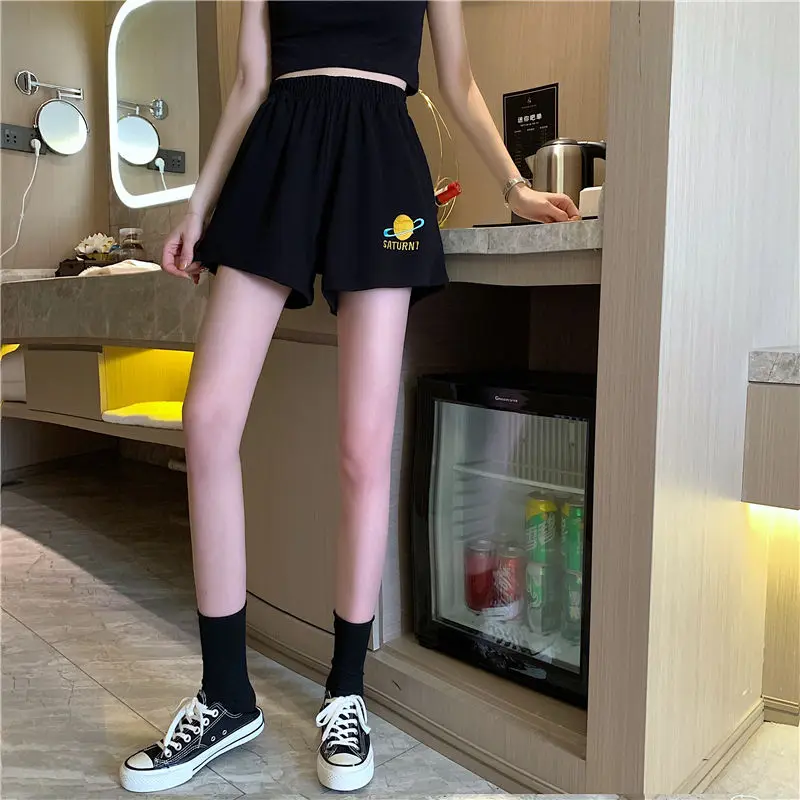 Loose Solid Wide-leg Harajuku Casual Simple Ins Trendy All-match Женские штаны Straight Planet embroidery Shorts Women Summer