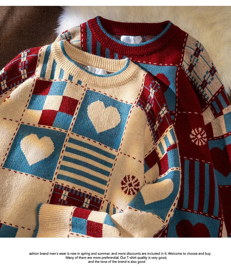 Love Knitted Sweater Mens Hip Hop Streetwear Harajuku Japanese Sweater Women Knitwears Pullovers Korean Fall Winter Clothes