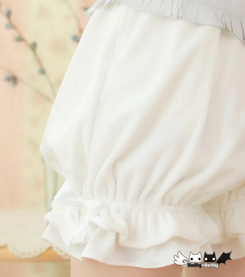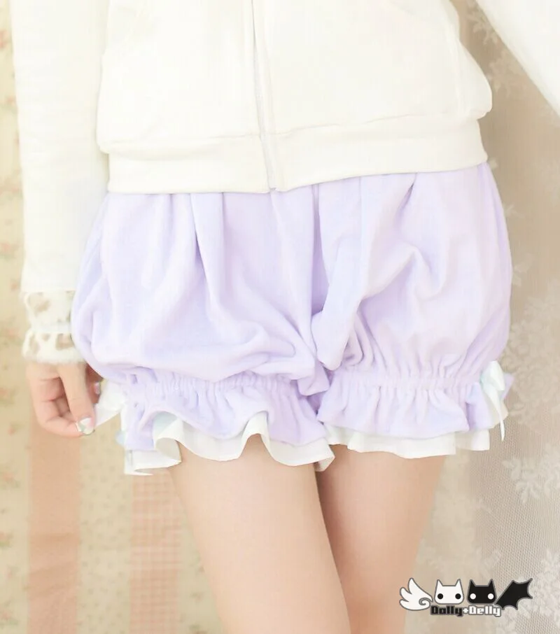 Lovely Cozy Elastic Waist Velvet Black/Light Sky Blue/Purple Lolita Bloomers for Girl with Cute Bow