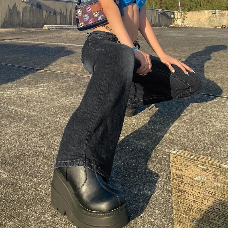 Low Waist Denim Jeans women Vintage Cute Chic Straight Pants wide leg jwans woman Streetwear Harajuku Grunge Clothes Trousers