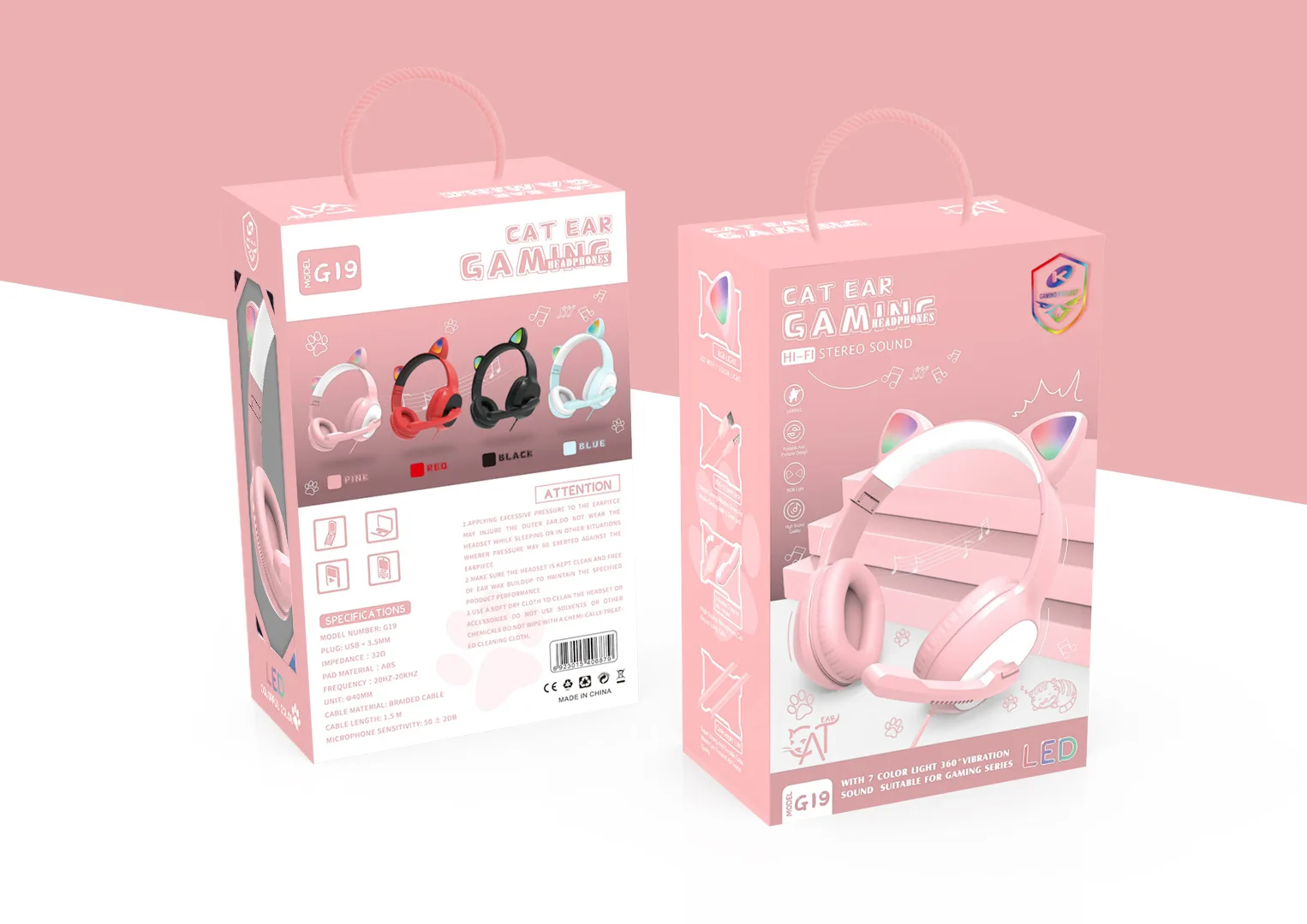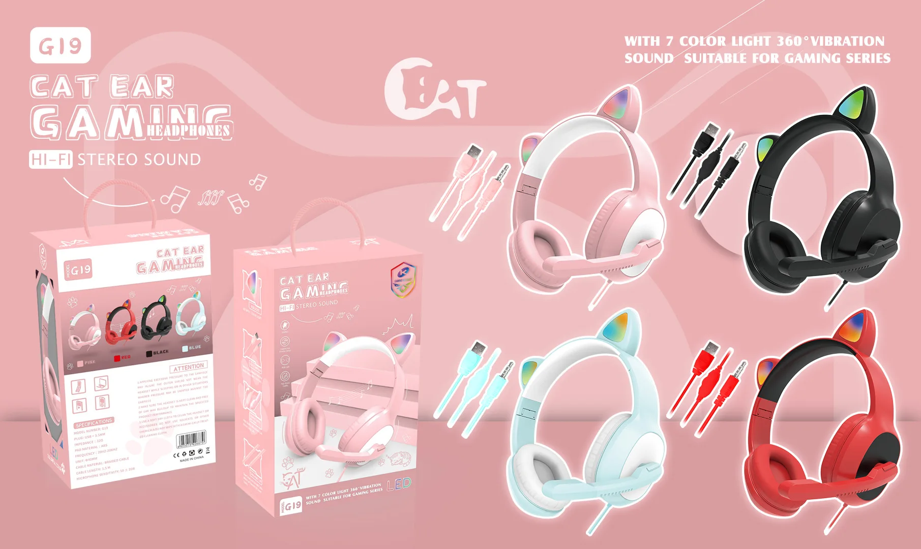 Luminous Headphones Headset Wired Headset Cat Ears Trendy Cute Music Mobile Phone Computer with Microphone