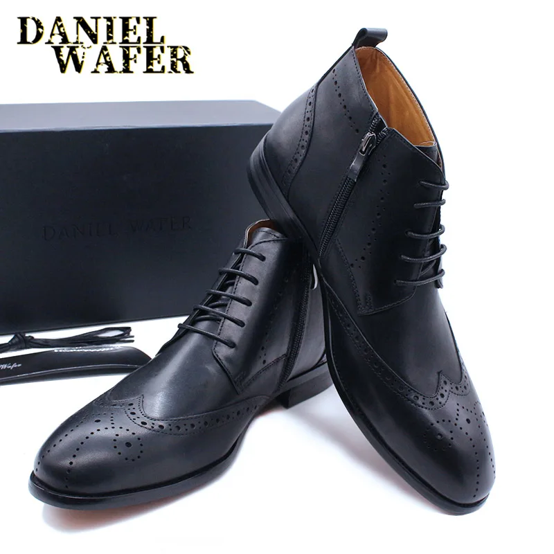 LUXURY DESIGN MEN'S BOOTS GENUINE LEATHER ANKLE BOOTS HIGH GRADE TOP ZIP BUCKLE STRAP MEN DRESS SHOES BLACK BLUE BASIC BOOTS MEN