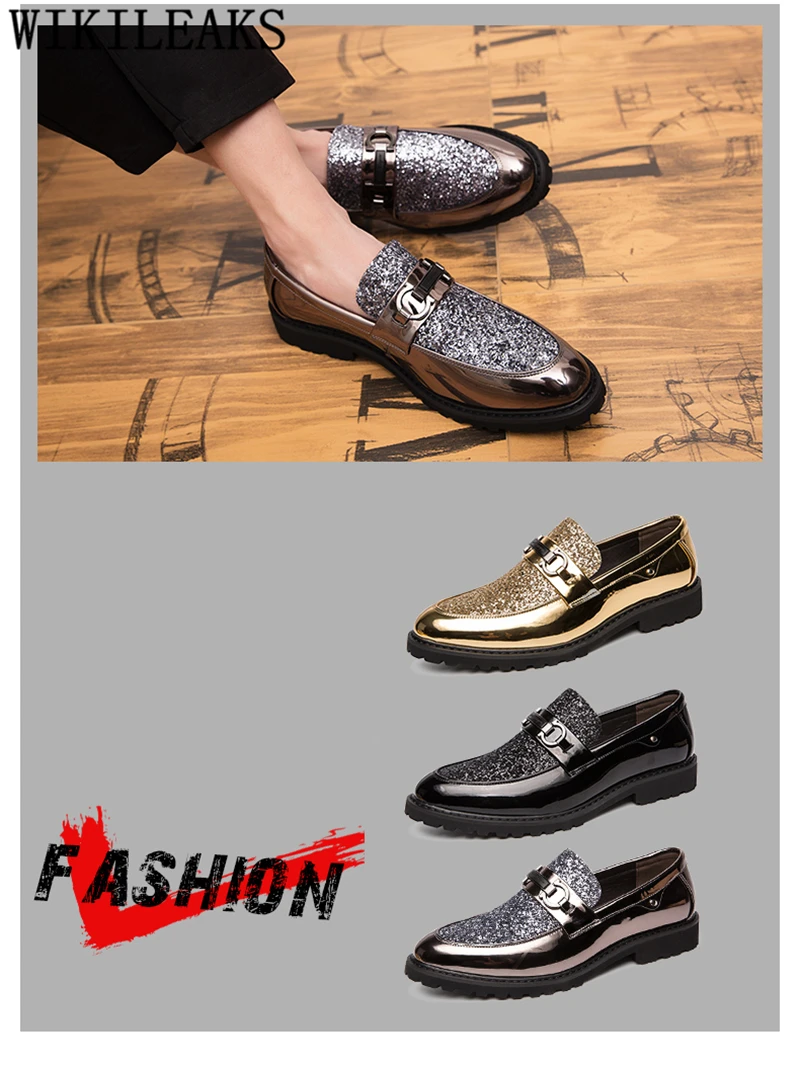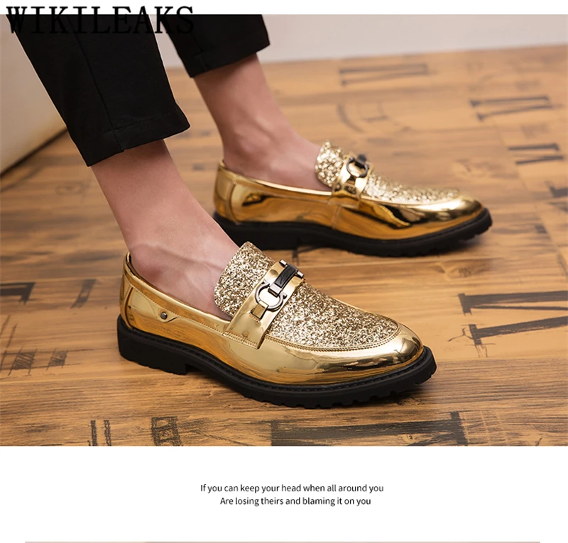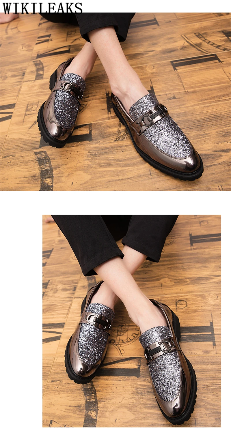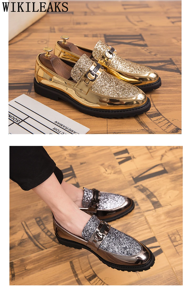Luxury Shoes Coiffeur Party Shoes Men Formal Slip Dress Glitter Designer Shoes Men Classic Gold Italian Dress Chaussure Homme