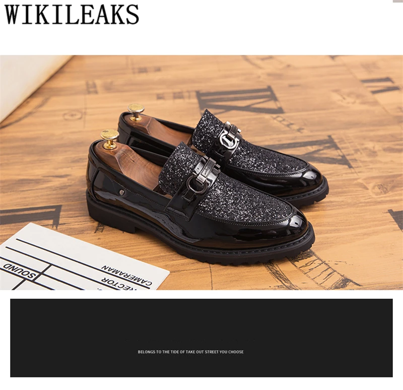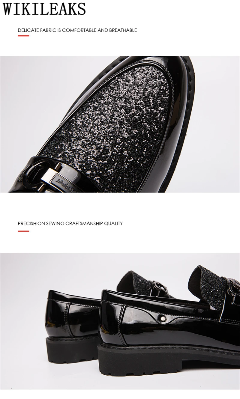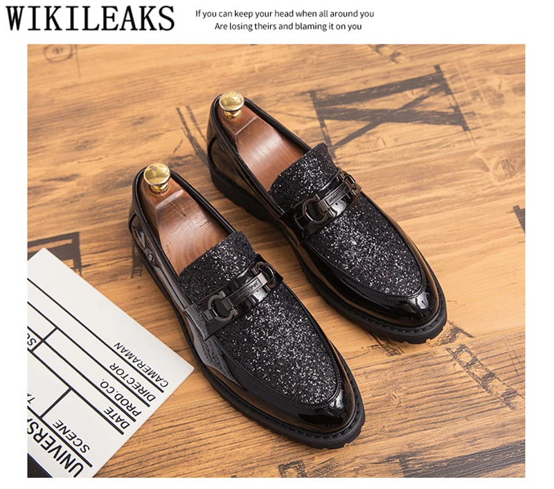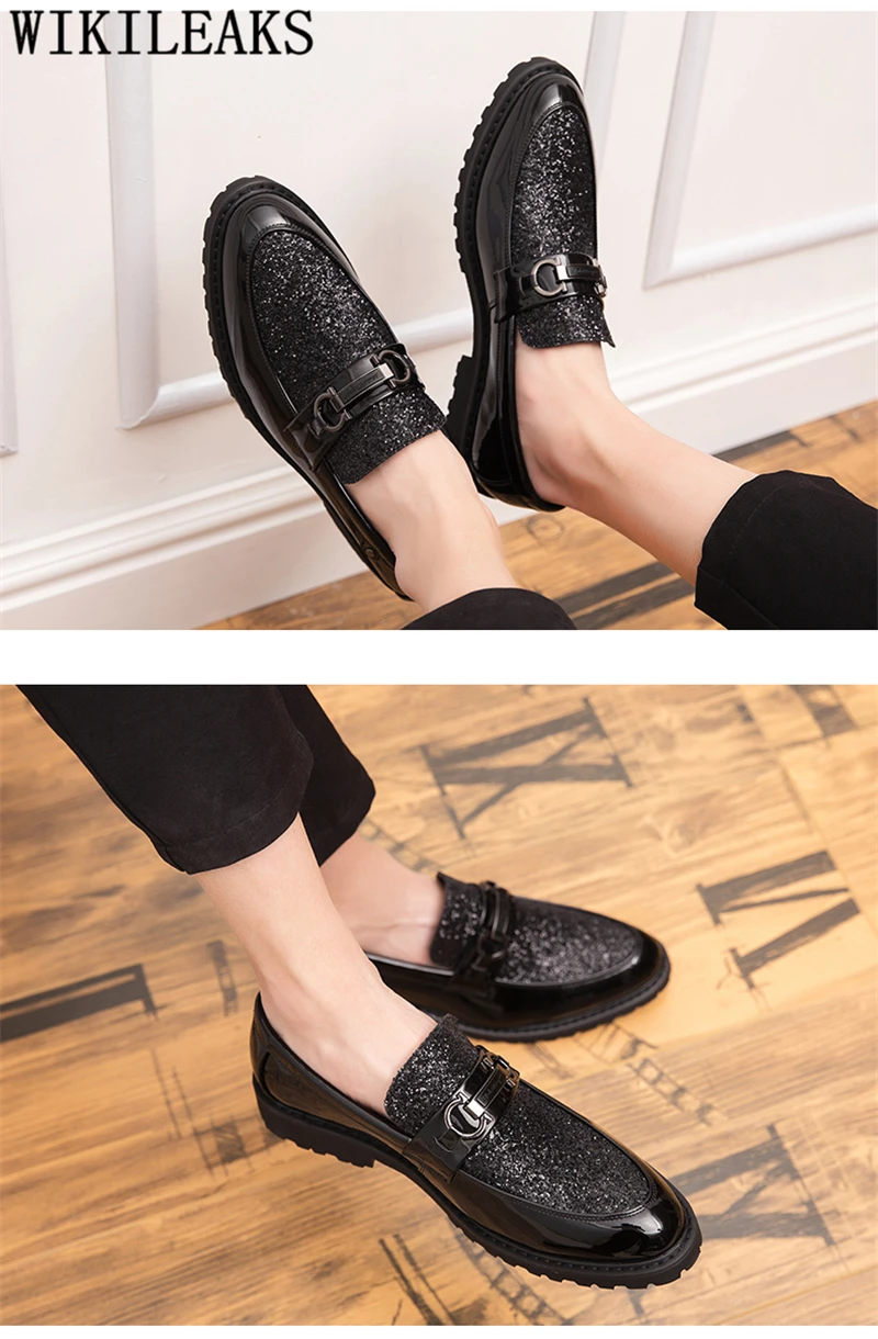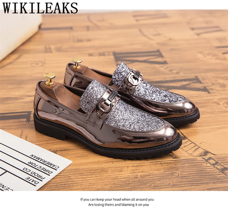 Luxury Shoes Coiffeur Party Shoes Men Formal Slip Dress Glitter Designer Shoes Men Classic Gold Italian Dress Chaussure Homme