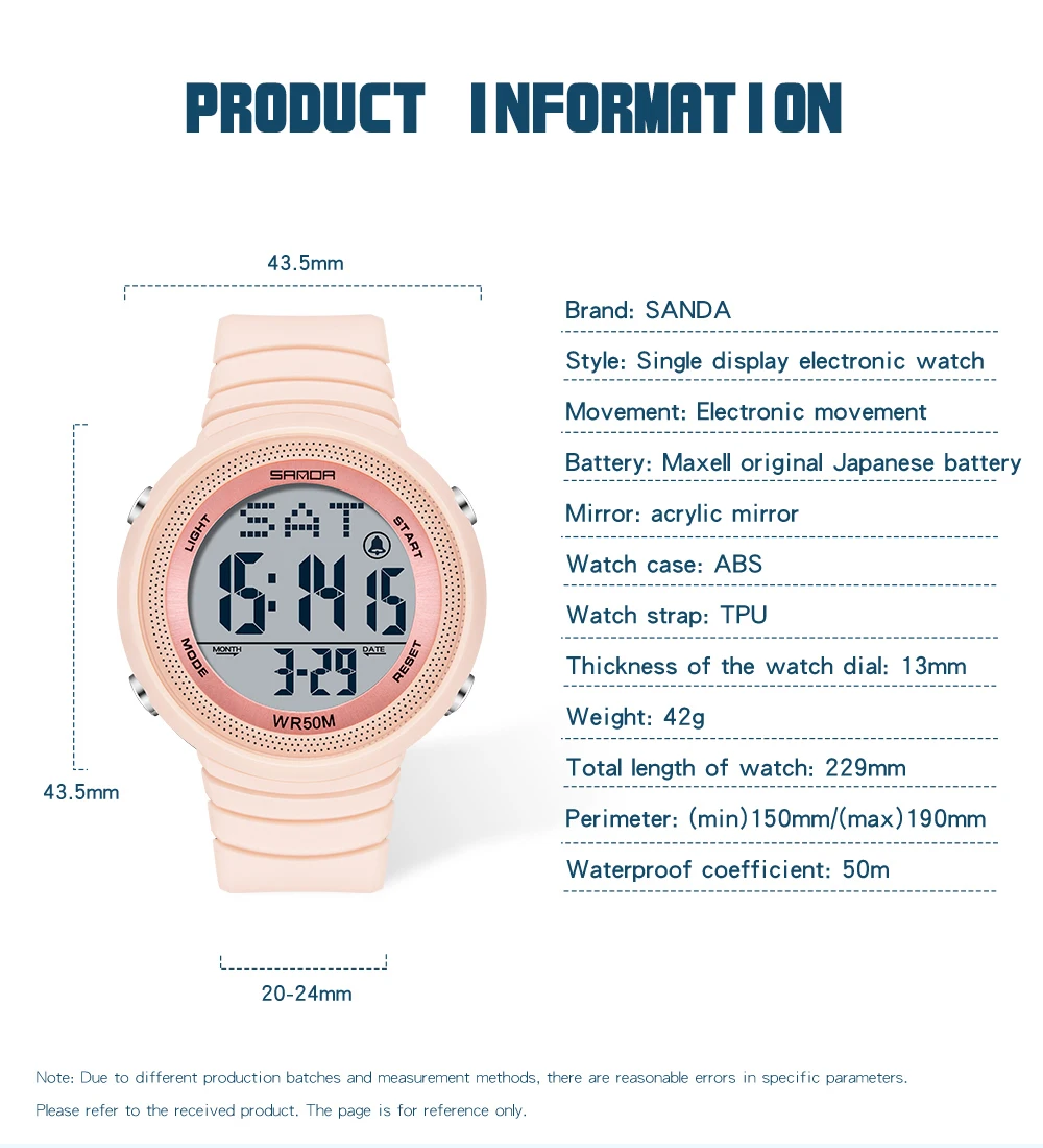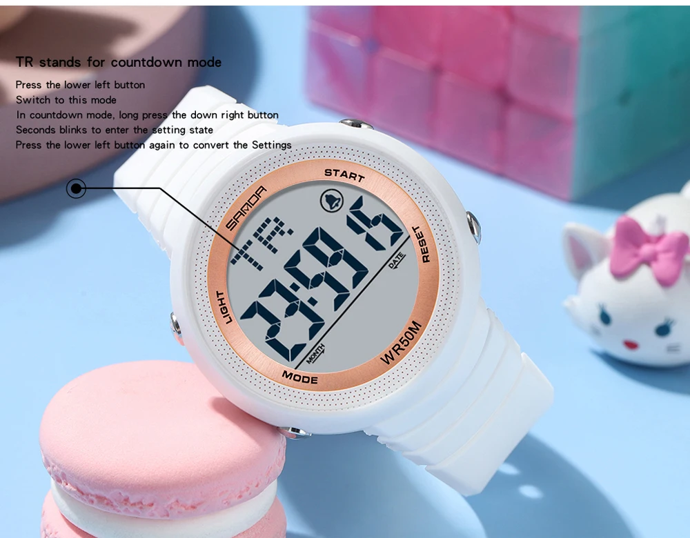 SANDA 2021 New Fashion Sport Women's Watches White 50M Waterproof Digital Watch for Girl Casual Wristwatch relogio feminino 6022