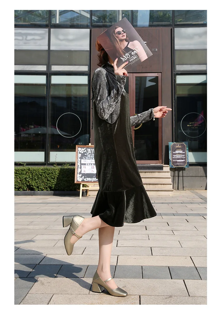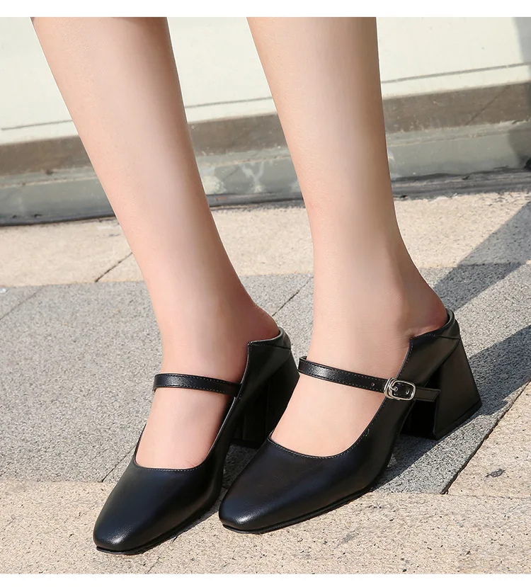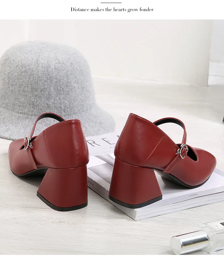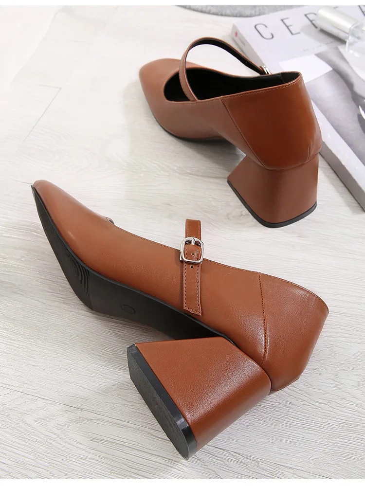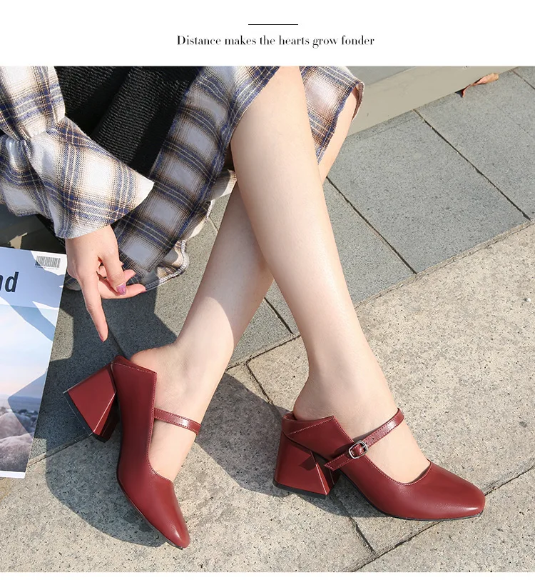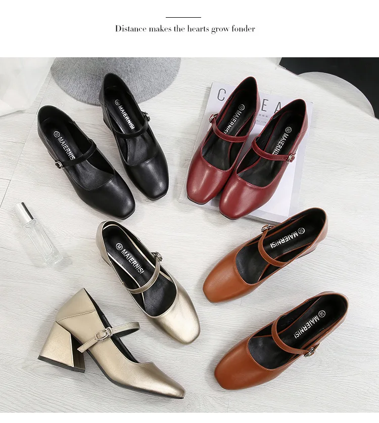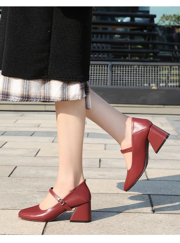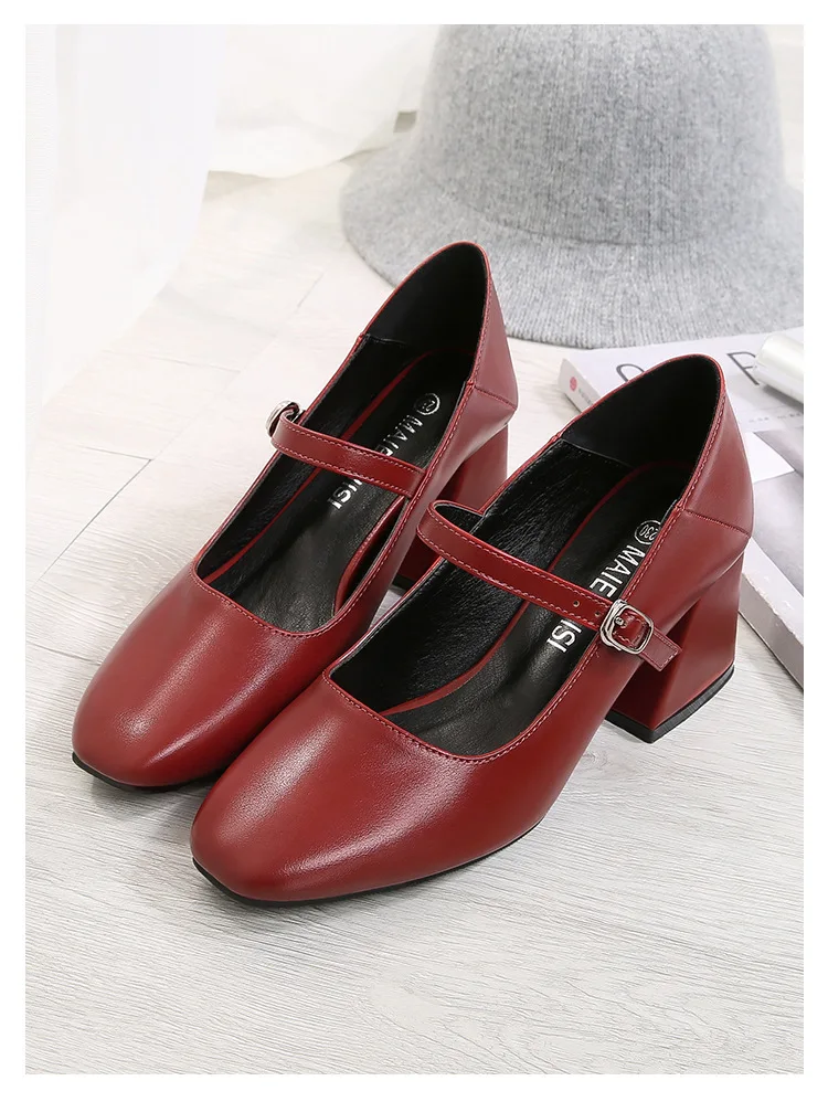 MAIERNISI Vintage Women Pumps Shoes Brand Chunky High Heels 6cm Comfortable For Office Career School Ladies Oversized Size 35-46
