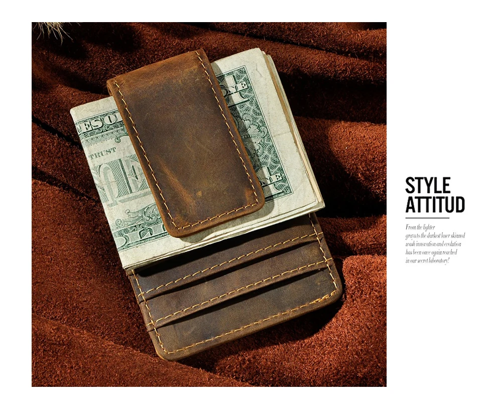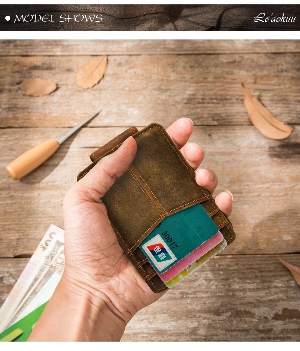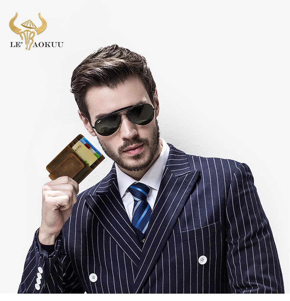 Male Quality Leather Travel Slim Rfid Wallet Front Pocket Magnetic Money Clip Mini Business Id Credit Card Case Holder Men